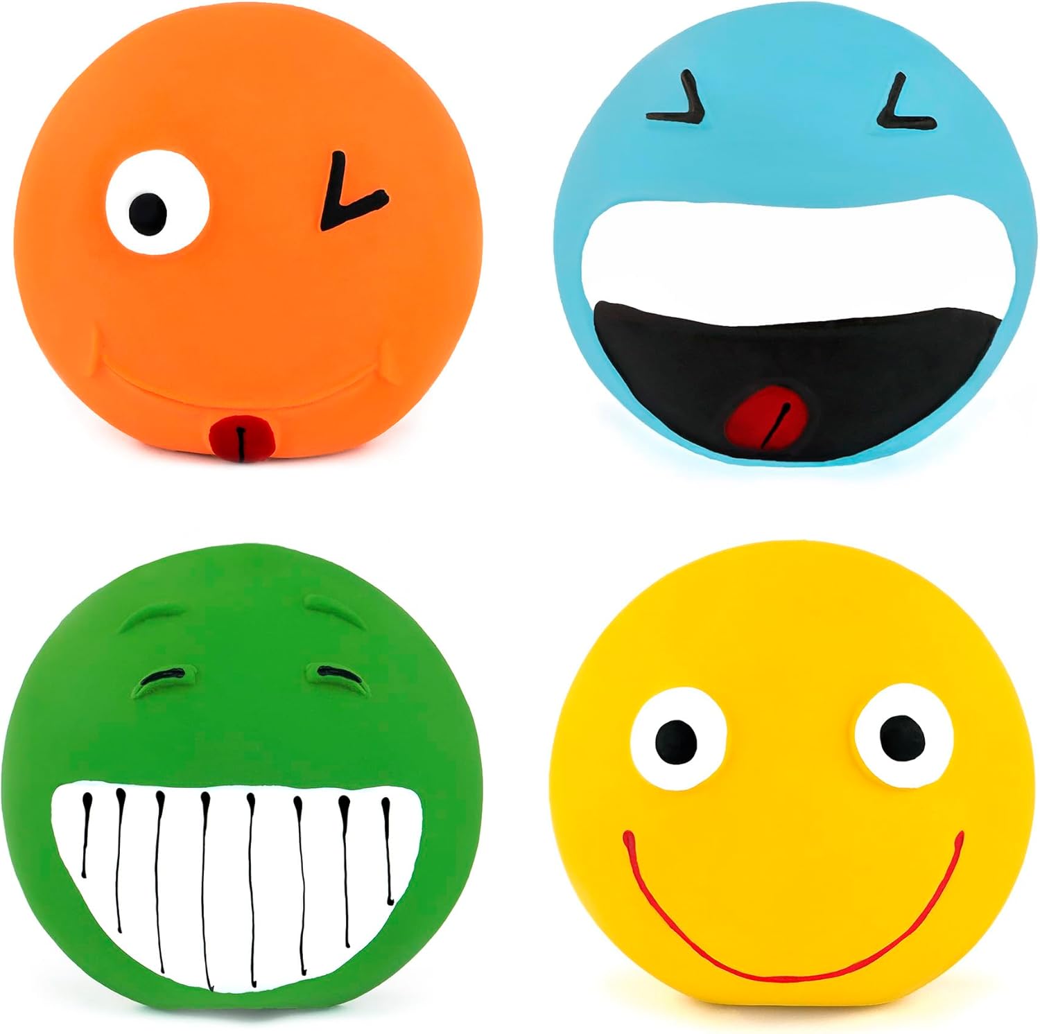 - 4 assorted flat smile latex dog balls