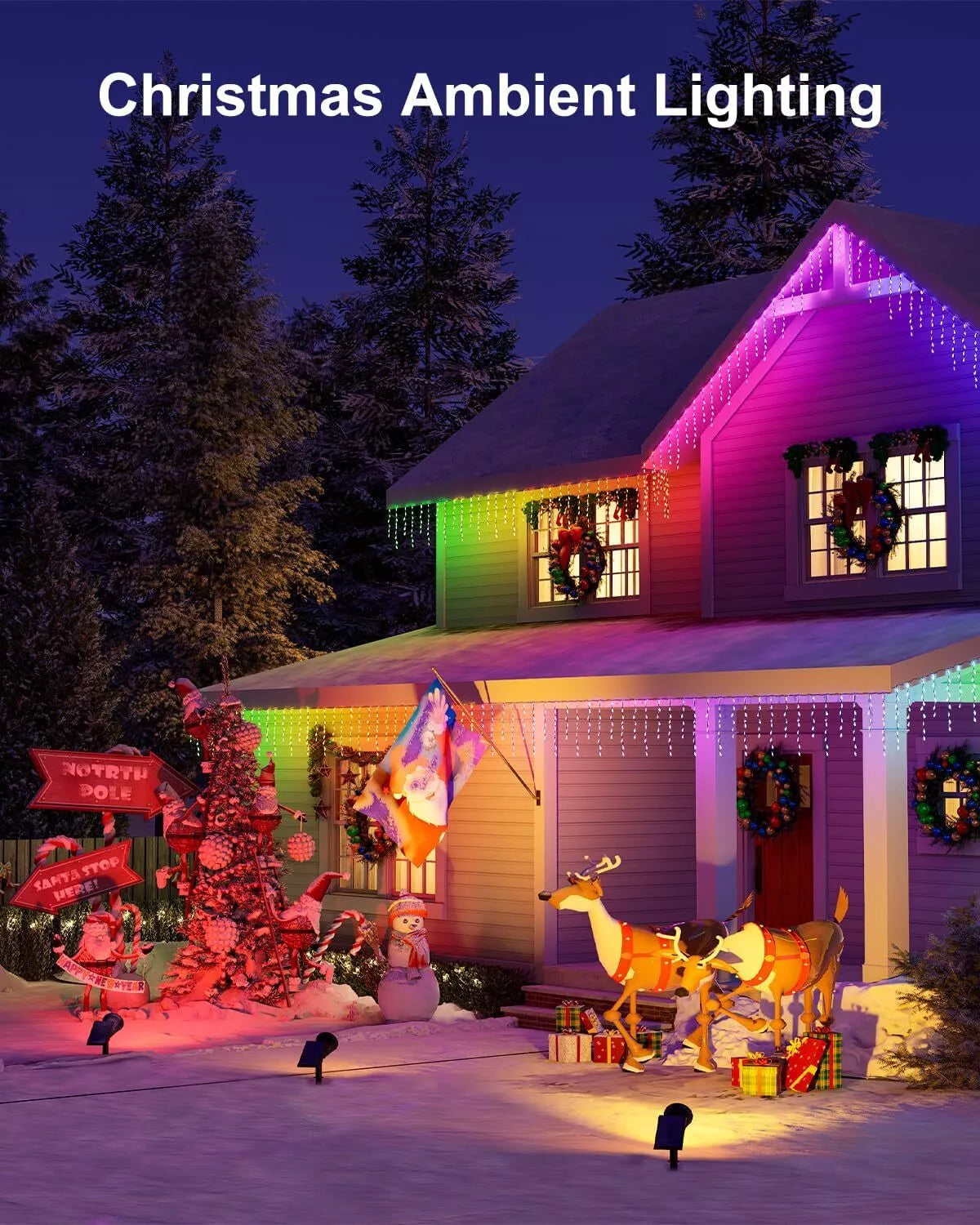 Setup was straightforward. The built-in hanging loops made it easy to secure the lights, and the connectable design meant we could link all three sets together seamlessly. It rained lightly during the evening, but the IP65 waterproof rating proved reliable — no issues at all.