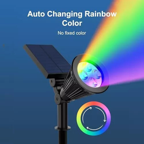 Illuminate your outdoor spaces effortlessly with the Solar LED Garden Spot Light. Designed for durability and energy efficiency, this powerful solar lamp provides brilliant lighting for pathways, gardens, lawns, and patios. Featuring dual light color modes—warm white, clear white, and colorful options—it adds elegance and safety to your outdoor decor. With an IP65 waterproof rating, it’s built to withstand all weather conditions, ensuring consistent performance throughout the year. The dusk-to-dawn sensor automatically activates lighting at night and turns it off during the day, delivering convenience and power savings. Perfect for enhancing landscapes, highlighting plants, or lighting walkways, this solar-powered LED spotlight blends functionality with modern design.