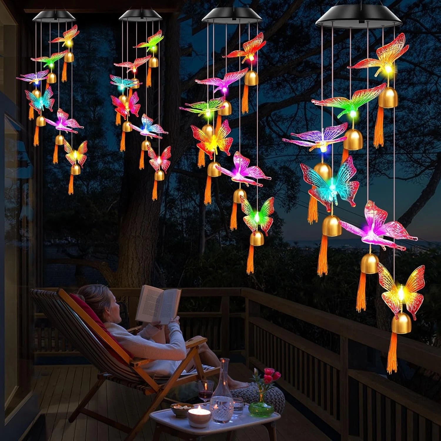 Add a touch of magic to your outdoor space with the Solar Power Butterfly LED Light Color Changing Wind Chime. Designed to captivate and illuminate, this stunning solar-powered decoration combines beauty and eco-efficiency. The multicolored LED butterflies automatically light up at dusk, transitioning through a soothing spectrum of colors. Perfect for gardens, patios, balconies, or porches, this waterproof and weather-resistant wind chime creates a calming ambiance all night long. With an IP65 rating and energy-efficient LED technology, it requires no wiring or maintenance — just hang it, let the sun charge it, and enjoy enchanting evenings filled with light and gentle movement.