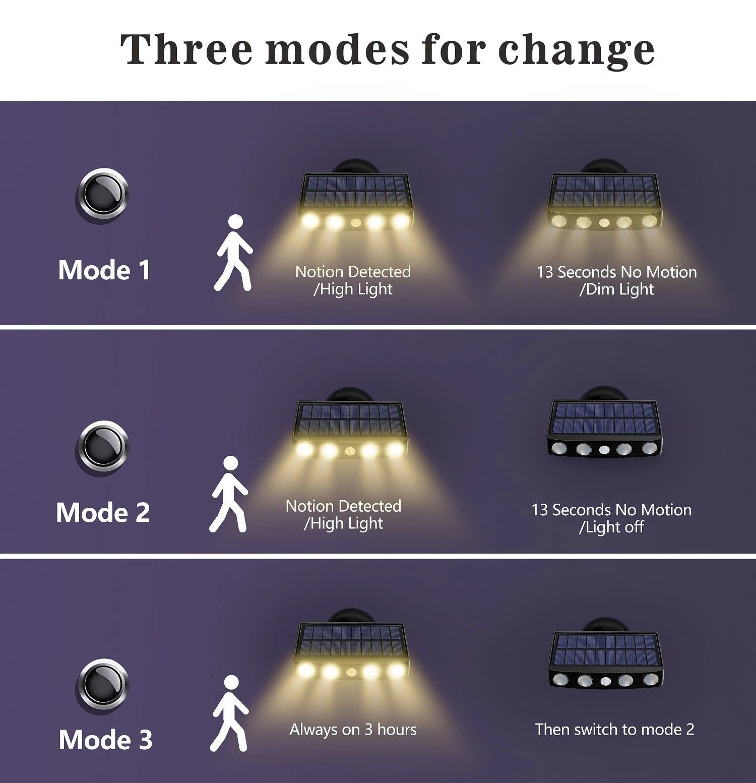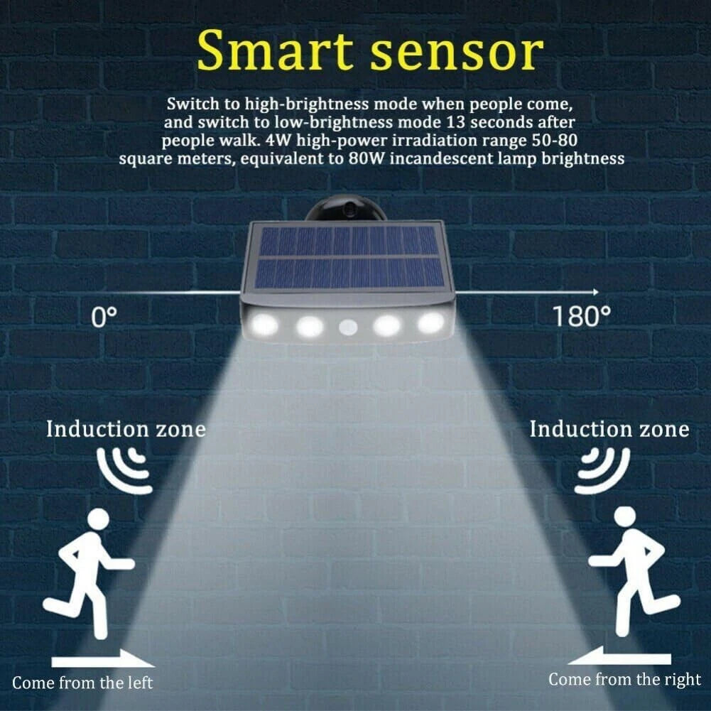 Illuminate your outdoor spaces efficiently with this Solar Powered Motion Sensor Wall Light. Designed with advanced PIR motion detection and a dusk-to-dawn sensor, this light automatically turns on when motion is detected, ensuring enhanced safety and energy savings. Featuring a durable, weather-resistant IP65-rated plastic body, it withstands rain, dust, and harsh outdoor conditions. With a warm white glow of 3000–3500K and a brightness of 1800 lumens, it provides both functionality and ambiance to your garden, yard, patio, or driveway. This energy-efficient, low-voltage wall light operates on solar power, eliminating wiring hassles and reducing electricity costs.