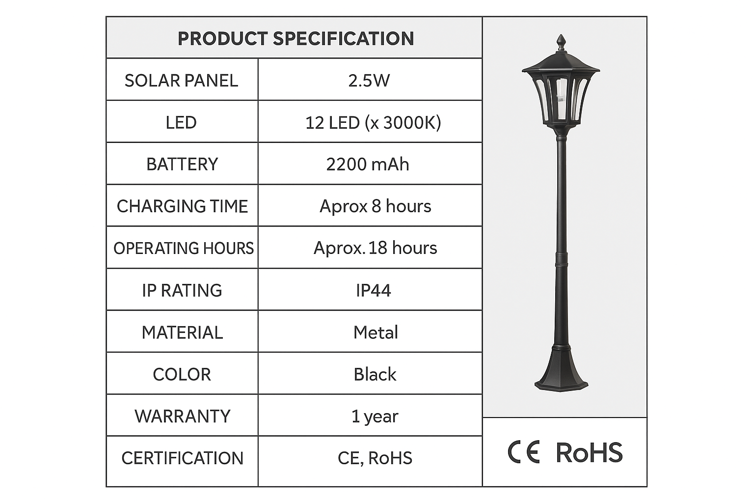 | Product Type | Solar Garden Lamp Post |