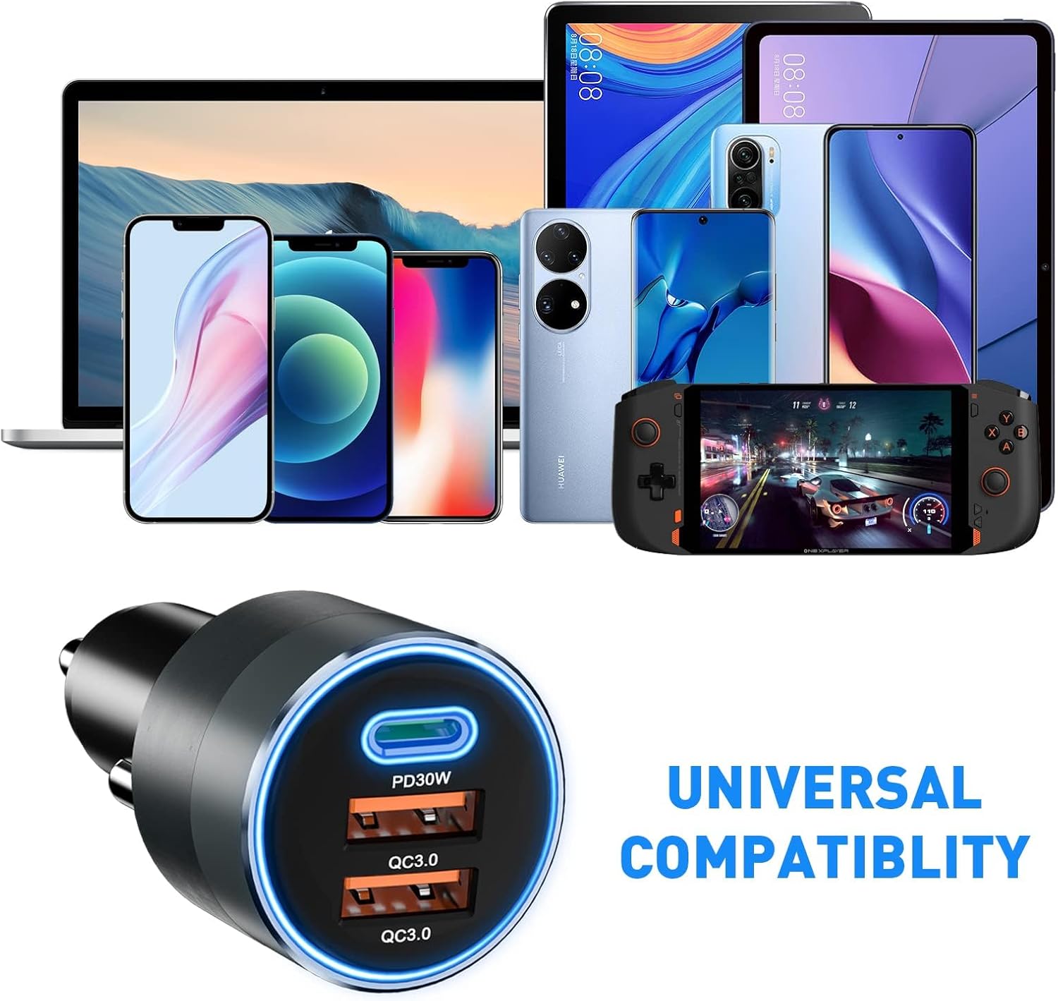 - 66W total output with PD30W and dual QC3.0 ports