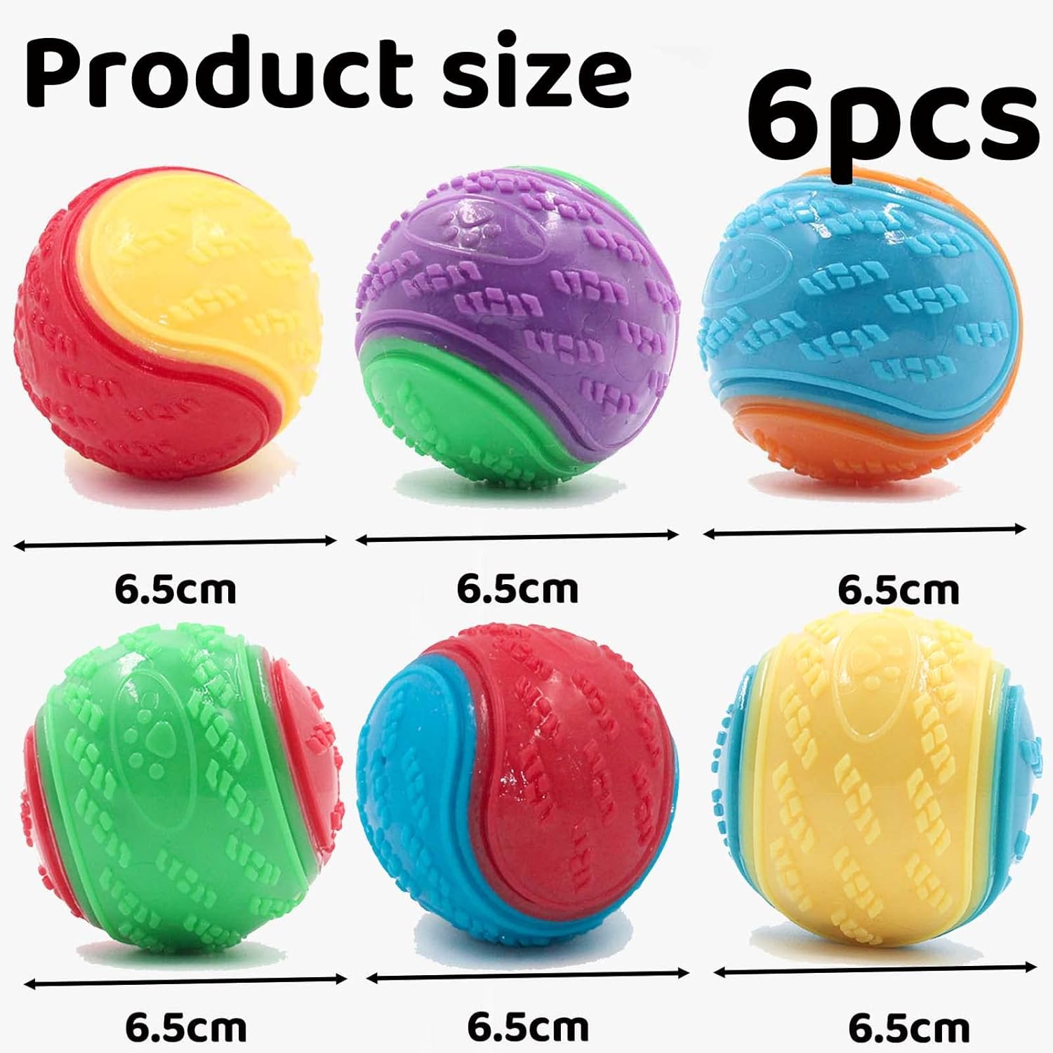 - Includes 6 squeaky dog balls in assorted vibrant colors