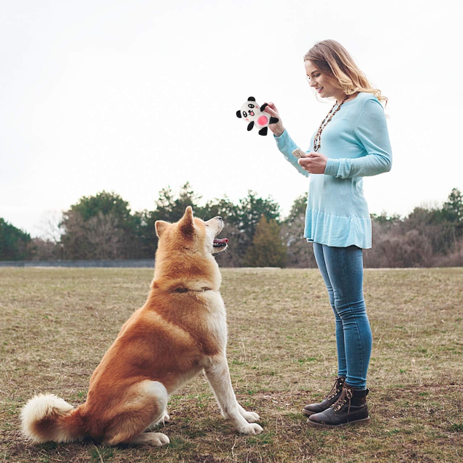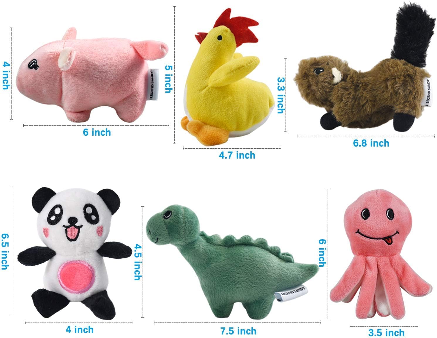 - 6 plush dog toys (panda, octopus, chicken, pig, squirrel, dinosaur)