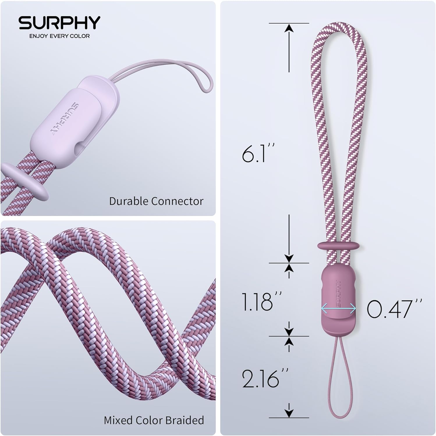 Our SURPHY Wrist Strap Lanyard 2 Pack offers a durable, comfortable, and secure solution for carrying phones, purses, keychains, USB drives, and other portable items. Made from premium nylon, these lanyards provide superior strength to prevent accidental drops while ensuring ease of use. The adjustable design features a movable buckle, allowing you to customize the loop length for maximum comfort. With a stylish two-colour combination in lilac and lilac purple, these wrist straps are both functional and visually appealing, ideal for everyday use and portable device security.