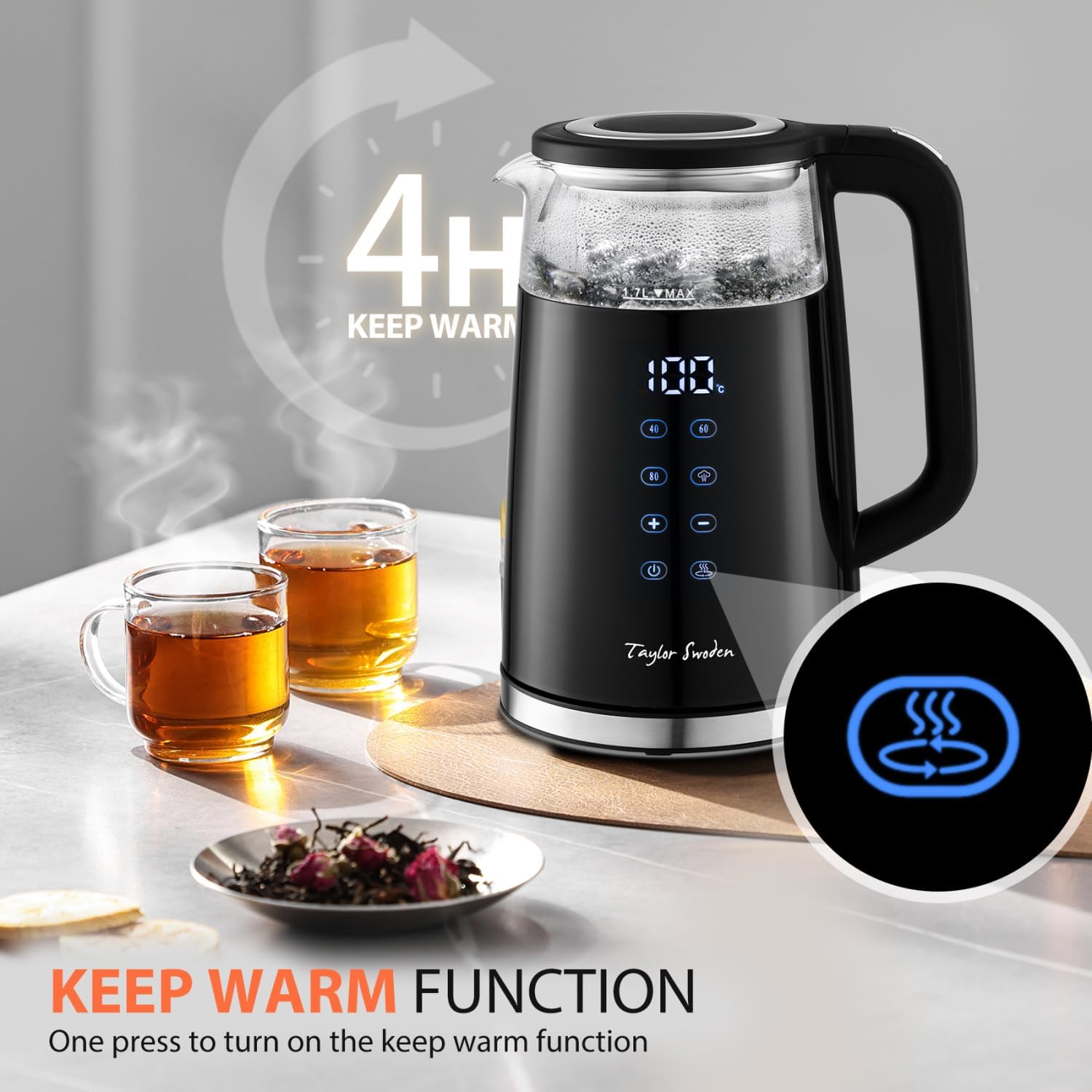 Keep Warm Function: Maintains water temperature for up to 4 hours.