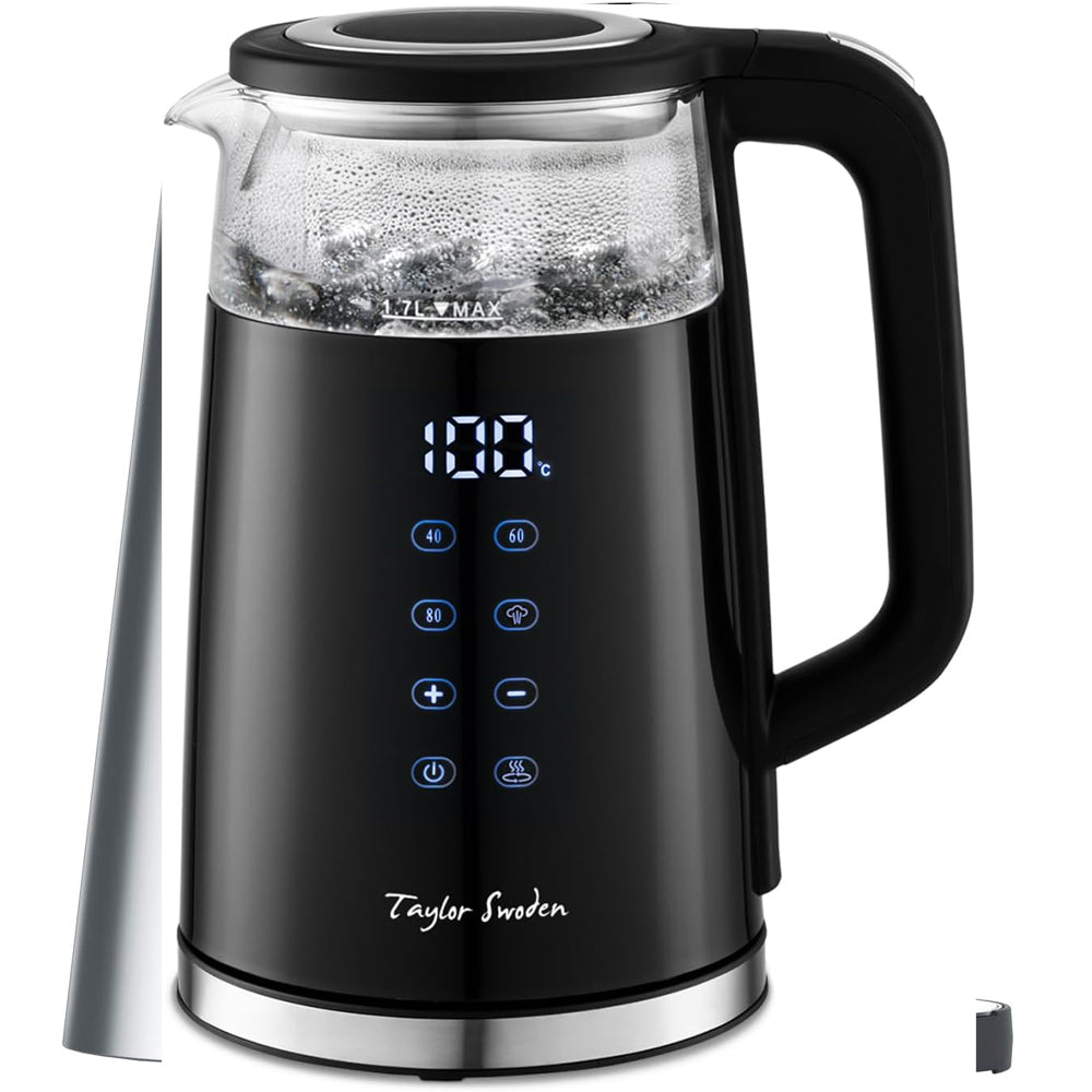 Our Swoden 1.7L Electric Kettle is designed for fast, precise, and safe boiling, making it perfect for tea, coffee, and other hot beverages. With a digital temperature display, you can heat water to your exact preference, while the double-walled insulated glass keeps it hot longer and ensures a cool-touch exterior.