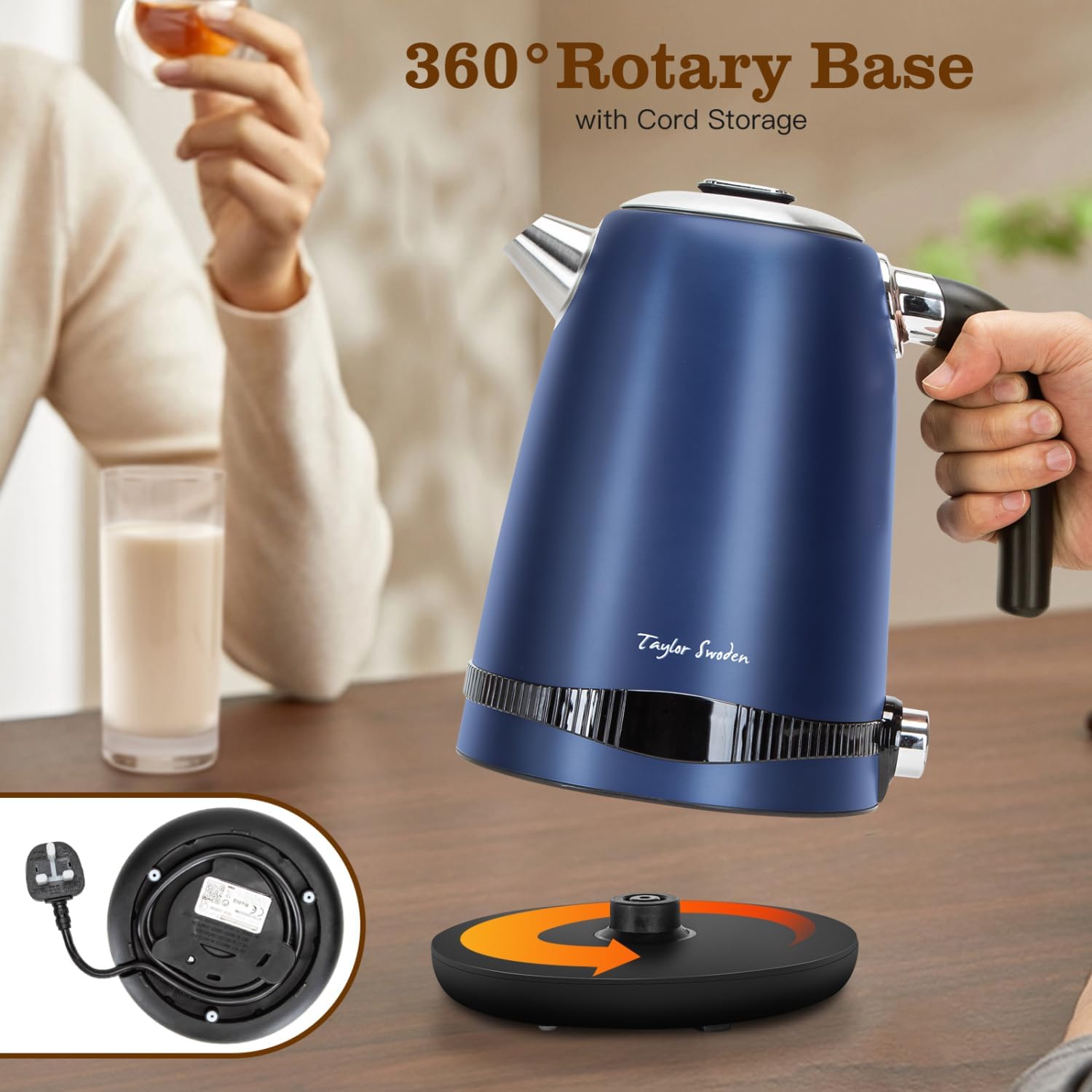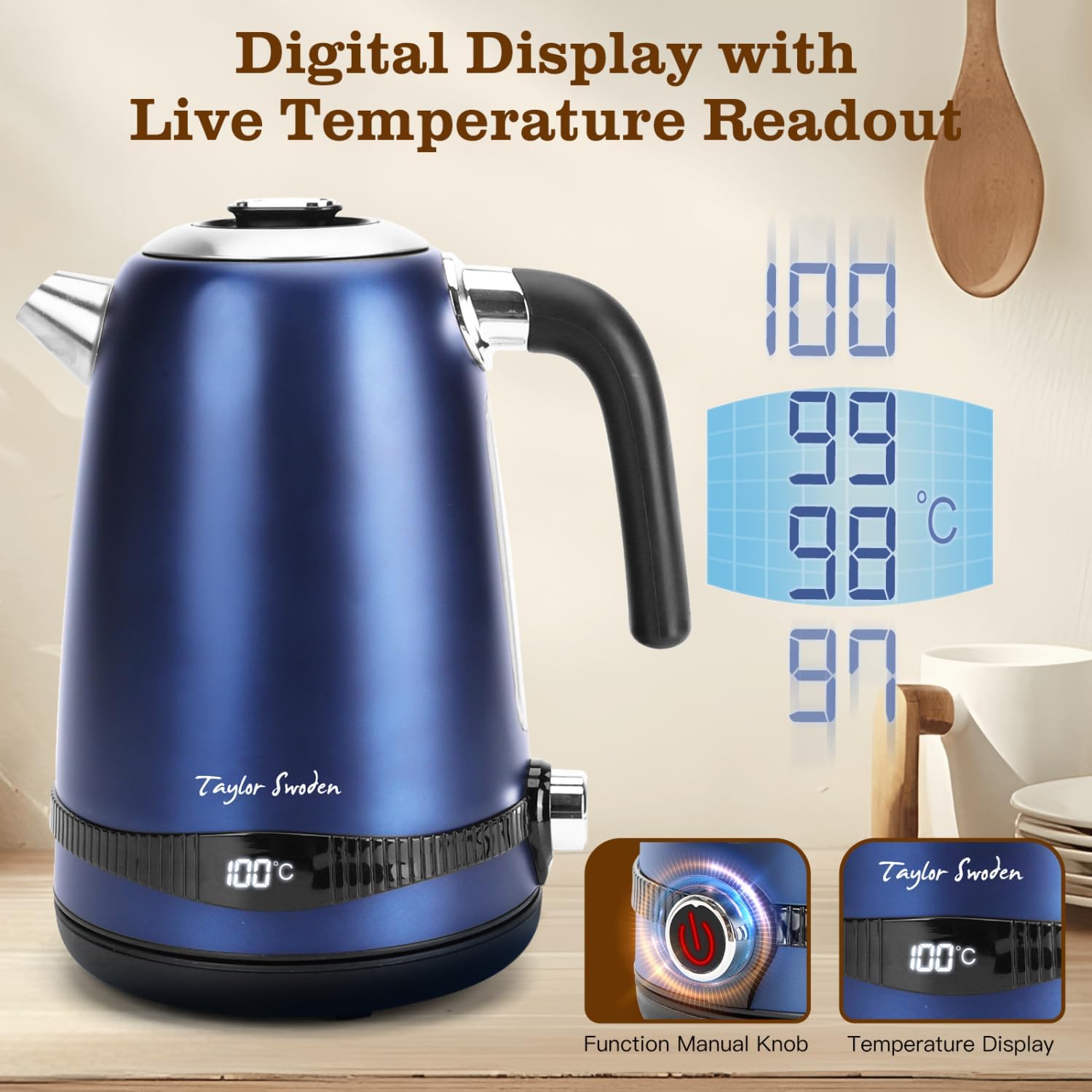 Our Taylor Swoden Electric Kettle 1.7L offers exceptional precision and convenience for tea and coffee lovers. With 7 variable temperature settings ranging from 40°C to 100°C, it allows you to brew your favorite beverages at the perfect heat every time. The 2200W fast boil technology ensures quick heating, while the 2-hour keep warm function maintains water temperature for extended enjoyment. Made with premium stainless steel and designed with boil-dry protection, this cordless kettle combines modern functionality with reliable safety. Ideal for homes, offices, and tea enthusiasts seeking quality and style.
