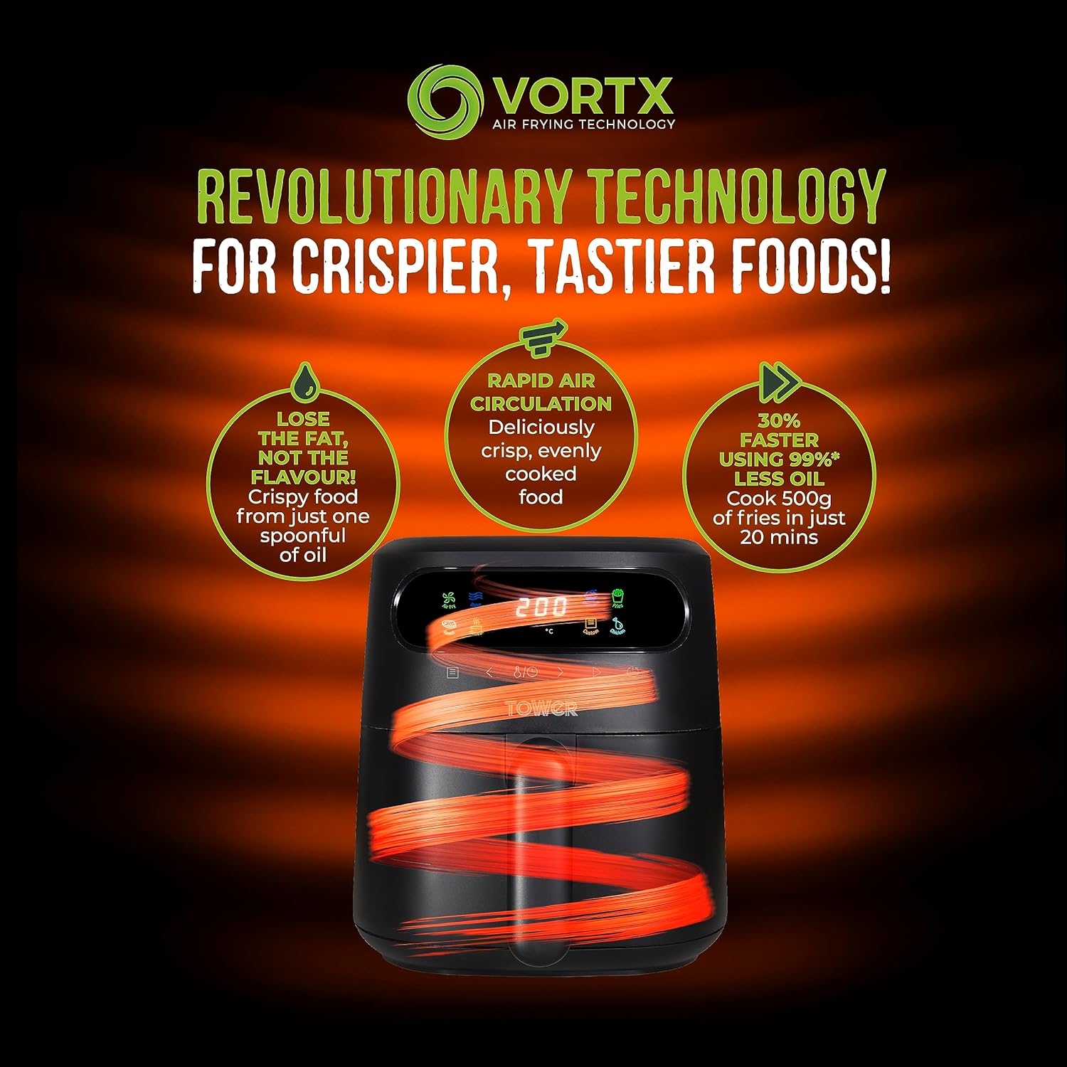 Our Tower T17125 Vortx 3L Digital Air Fryer is designed for convenient, healthier cooking without the hassle. With a compact 3L capacity, it’s perfect for couples or small families, allowing you to prepare crispy chips, juicy chicken, roasted vegetables, and even baked treats with little to no oil.
