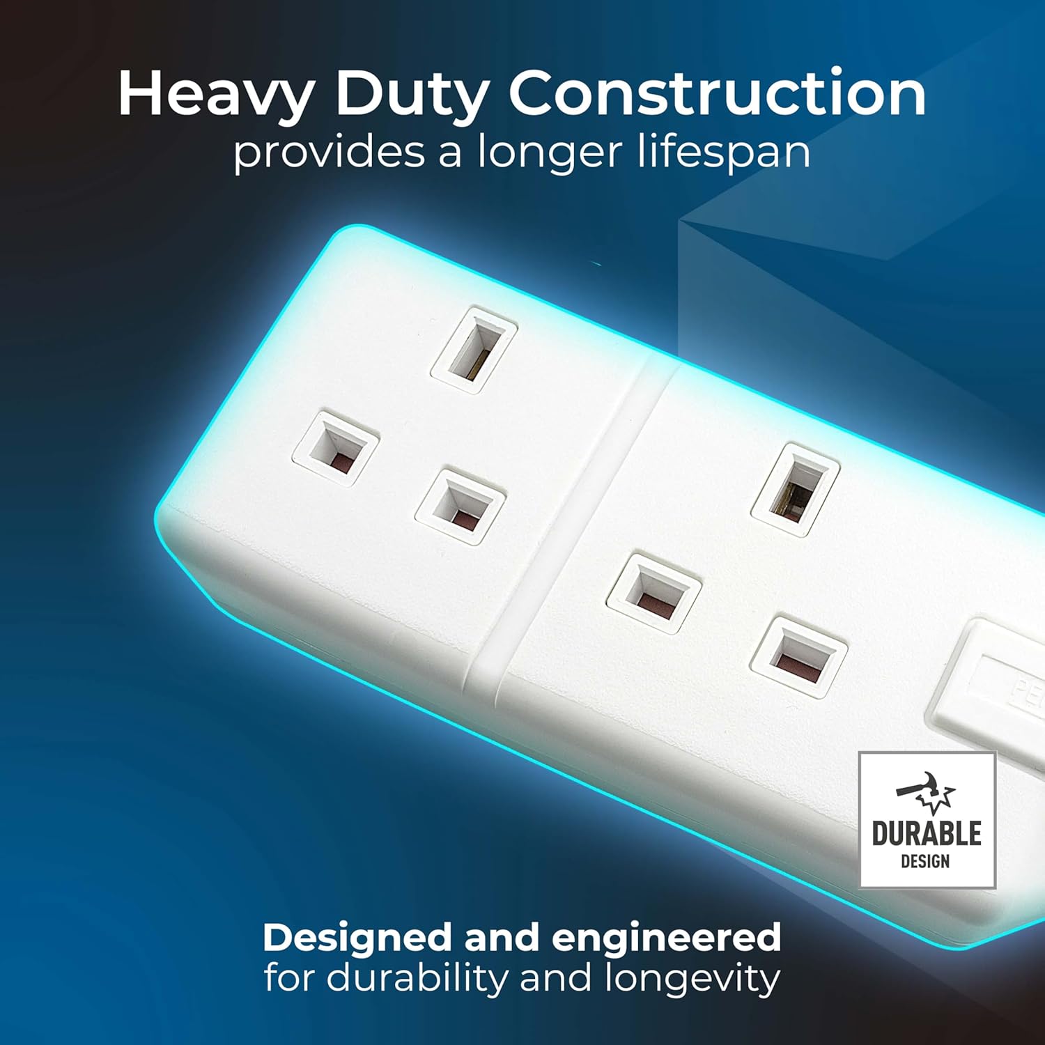 Our heavy duty, two socket, 13A extension lead with 4 metre cable is designed for rugged work environments, offering reliable power for DIY projects, light industrial tasks, and electrical appliances. Featuring rewireable design for a custom power solution, safety shuttered sockets to prevent accidental insertion of foreign objects, and a power indicator to confirm readiness, this extension lead extends the reach of wall sockets while meeting BS1363-2 standards. Backed by a one-year manufacturer warranty from Masterplug, it provides safe and dependable power wherever needed.