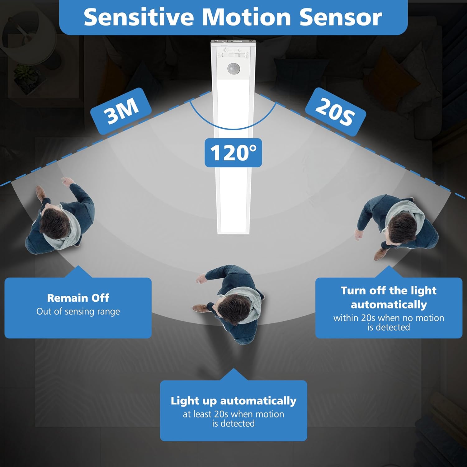 Under Cabinet Kitchen Lights, 3 Color Dimmable 43 LED Motion Sensor Cupboard Lights Indoor, 2000mAh Rechargeable Strip Wardrobe Lighting Magnetic Stick on Closet Light (26cm, 2 Pack, Silver)