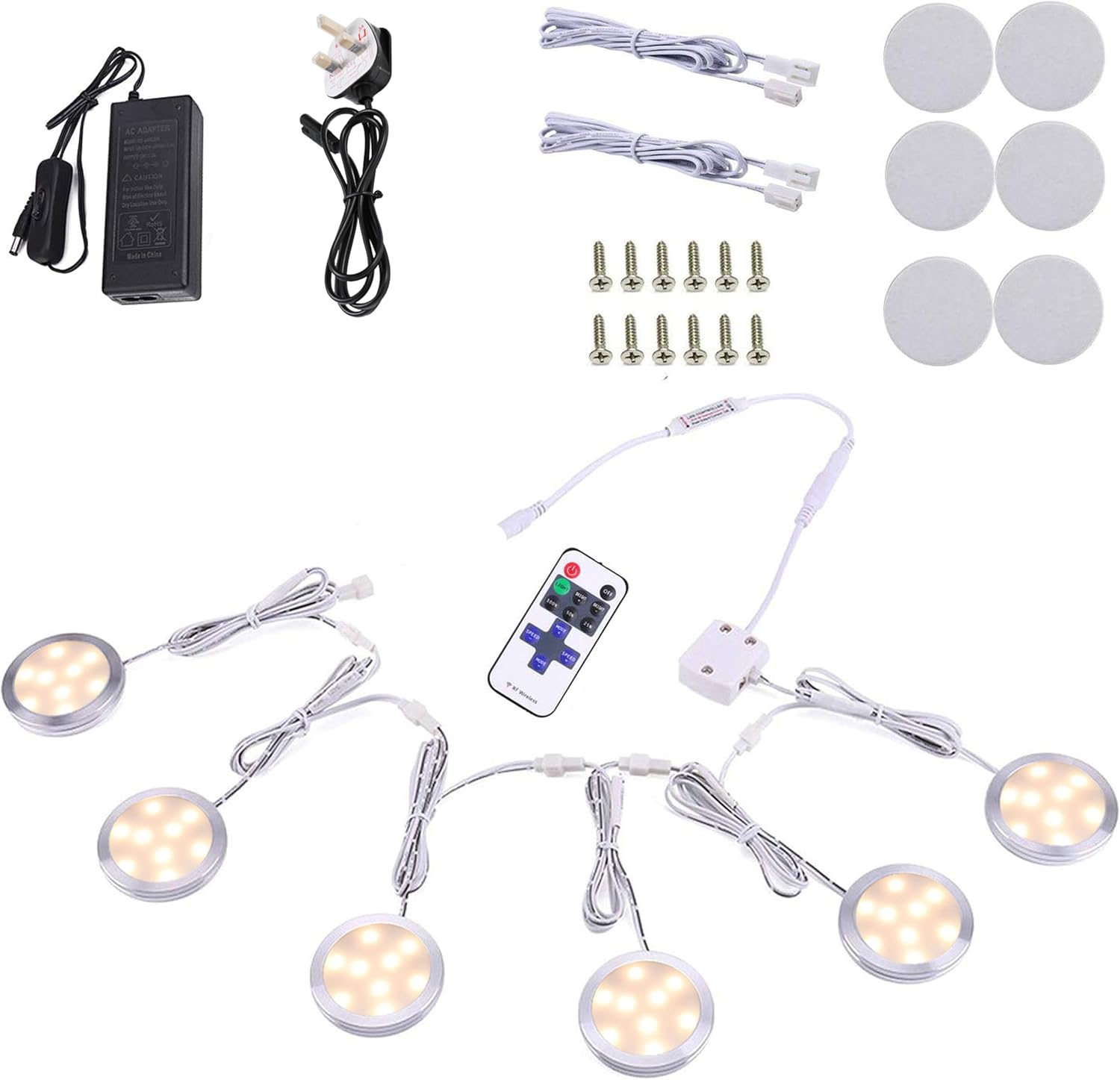 Under Cabinet LED Kitchen Lights 6 Pack Remote Dimmable Warm White 2700K