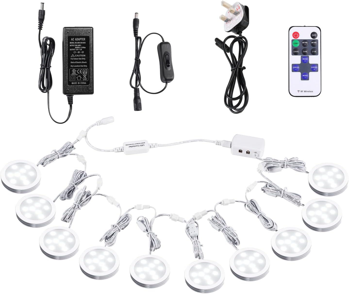 Under Cabinet LED Puck Lights 10-Pack Dimmable with Remote 6000K Daylight