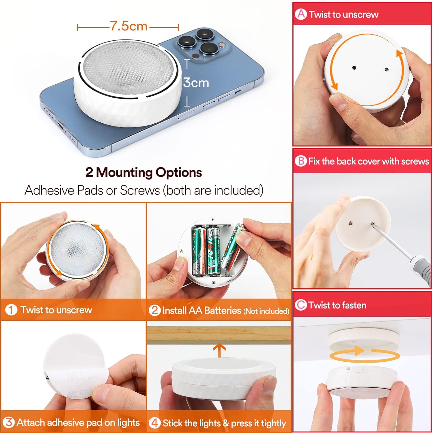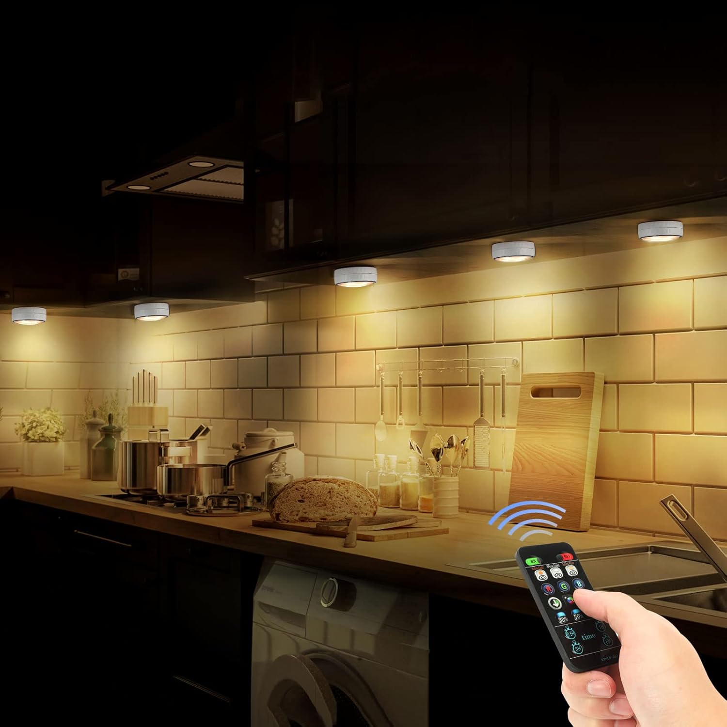 Under Cabinet LED Puck Lights Battery Powered Stick-On RGB Kitchen Closet Lighting with Remote 2 Pack