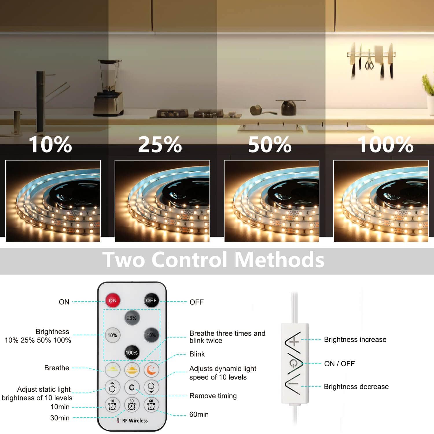 Under Cabinet LED Strip Lights Kit 3m Warm White Dimmable with Remote