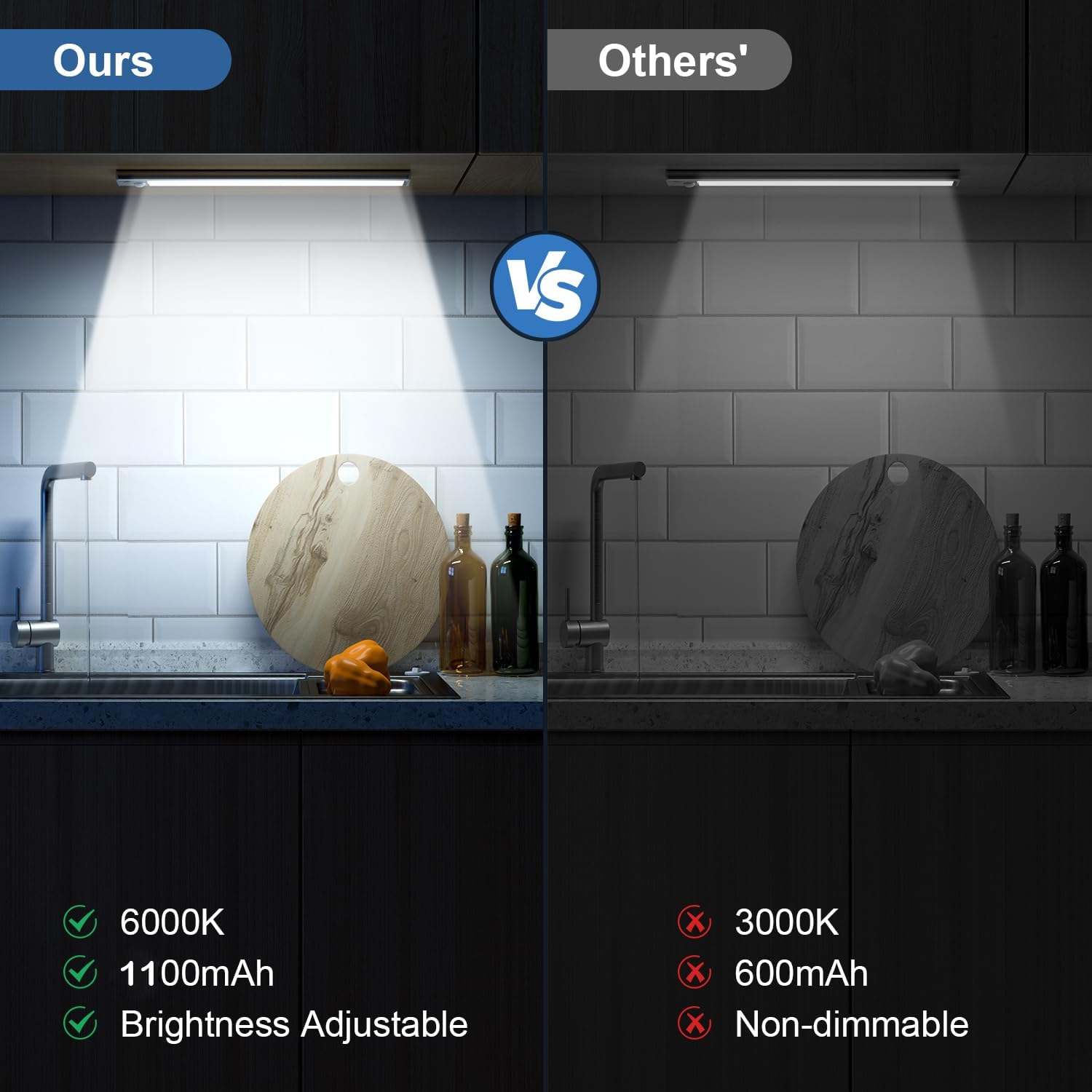 Under Cupboard Kitchen Lights LED – Motion Sensor Rechargeable Cabinet Light, Magnetic Stick-On USB, 6000K Cool White