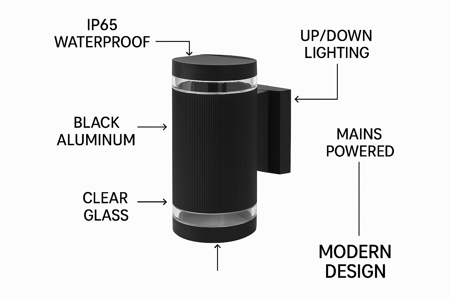 Illuminate your outdoor spaces with the Best Up & Down Wall Sconce Light. This mains-powered, waterproof garden light is designed to enhance the ambiance of your front door, patio, terrace, hallway, or porch. With its sleek design and efficient lighting, it provides both functionality and style to your exterior. Note. Bulb Not included