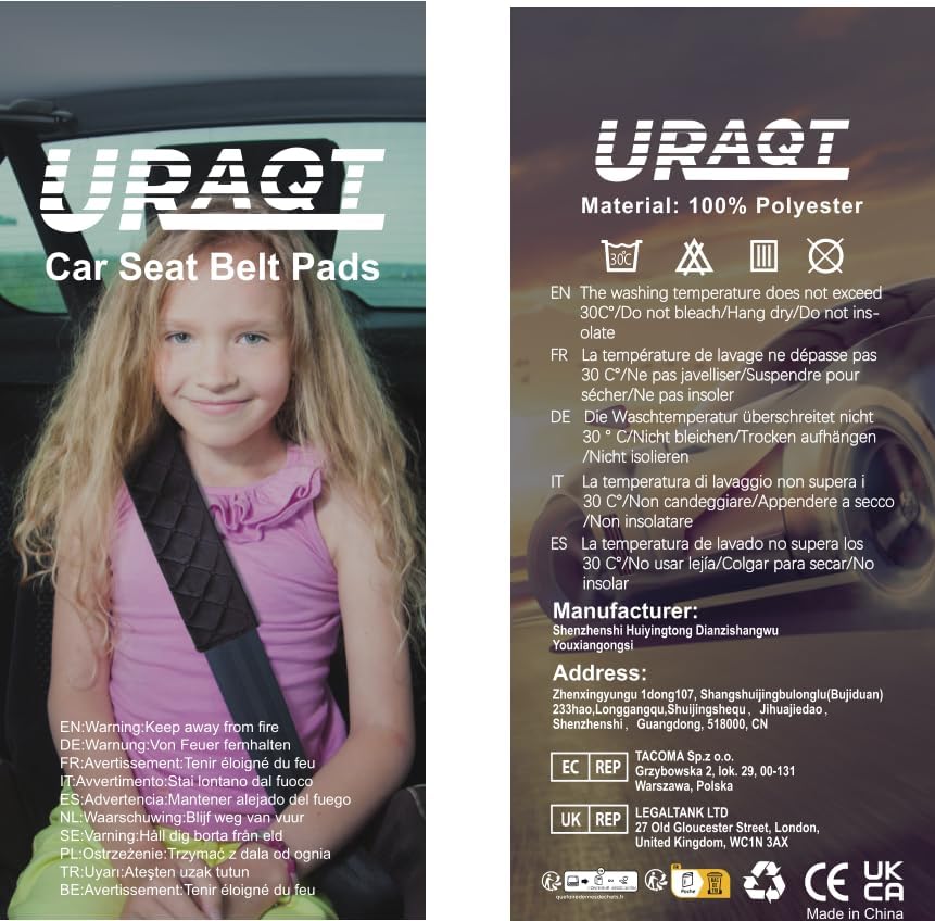 Our URAQT Car Seat Belt Pad Cover 2 Pack provides a soft, cushioned layer between your shoulder and seat belt, enhancing comfort and reducing friction during travel. Crafted from high-quality cotton and nylon materials with microfiber memory foam padding, these covers are designed to relieve pressure while driving. Their easy-to-use wrap-around design ensures a secure fit on most car seat belts and can also be used on luggage straps, backpacks, or messenger bags for versatile comfort and protection.
