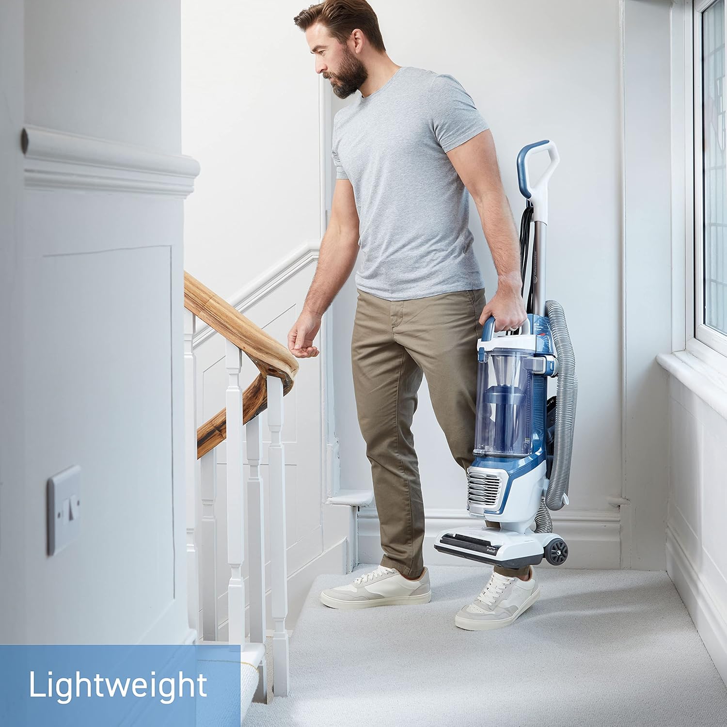 This vaccum is light weight and easy to carry around the house.