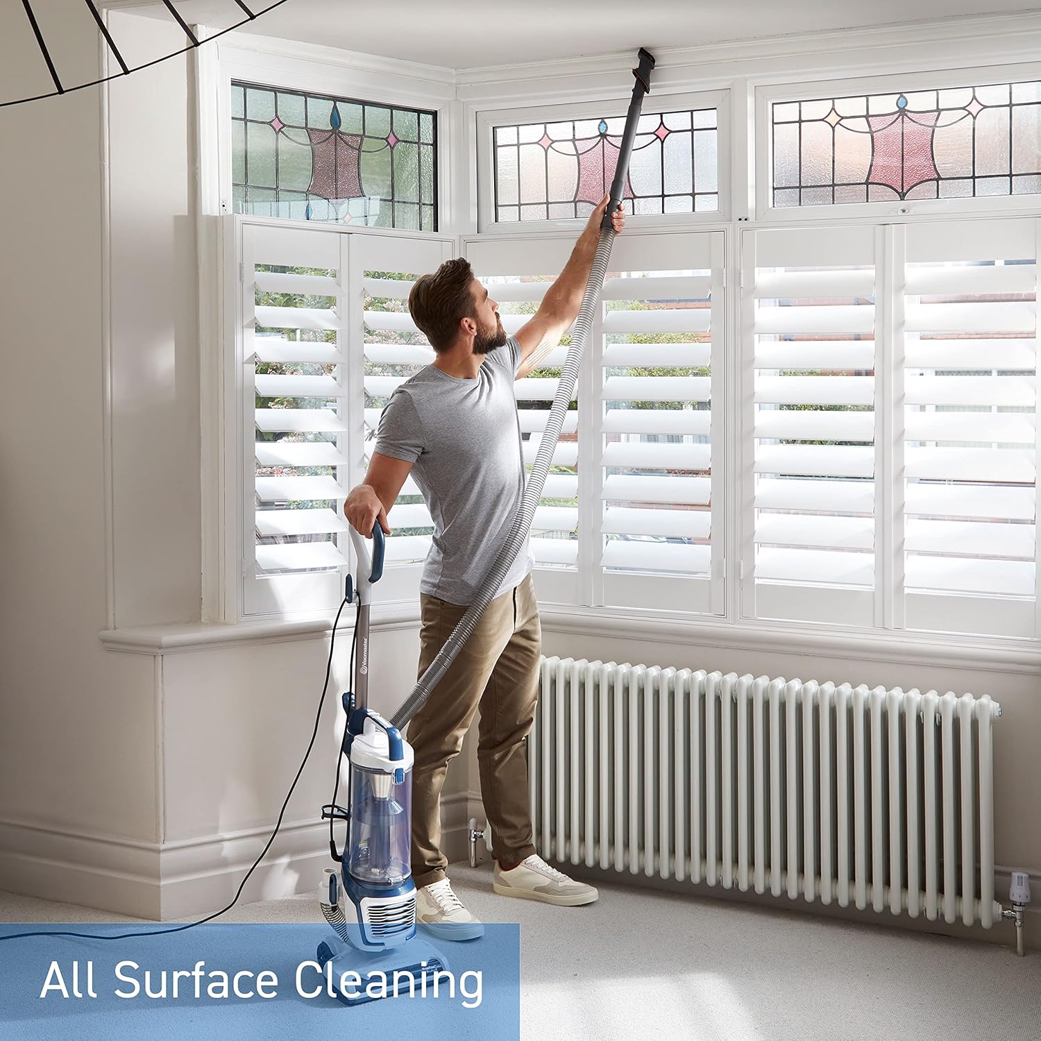 Experience deep, thorough cleaning with the Vacmaster Respira AllergenPro bagless upright vacuum. Engineered for homes with pets and allergy concerns, this upright features a sealed dust management system with HEPA 13 filtration that captures 99.9% of allergens and dirt, helping you breathe easier after every clean. The Extendable hose, swivel steering, and all-floor cleaning head with task lights empower you to reach tight gaps and dark corners with confidence. The WrapFree brush roll continuously cuts and removes tangled hair, maintaining optimal suction and performance. Dual motor technology powers the vacuum and the brush roll independently, so turning on the brush roll won’t compromise suction. A Pet Mate tool lifts hair from upholstery, carpets, and cars, while an extra-large 2 L dust bin reduces frequent emptying. Includes a 3-in-1 attachment for versatile cleaning on furniture, stairs, and hard-to-reach areas. Switch the motorised brush bar on for tough dirt, or turn it off for delicate hard floors. Backed by Vacmaster’s quality engineering and a 3-year guarantee (upon registration), this vacuum is a reliable solution for households with pets and allergies.