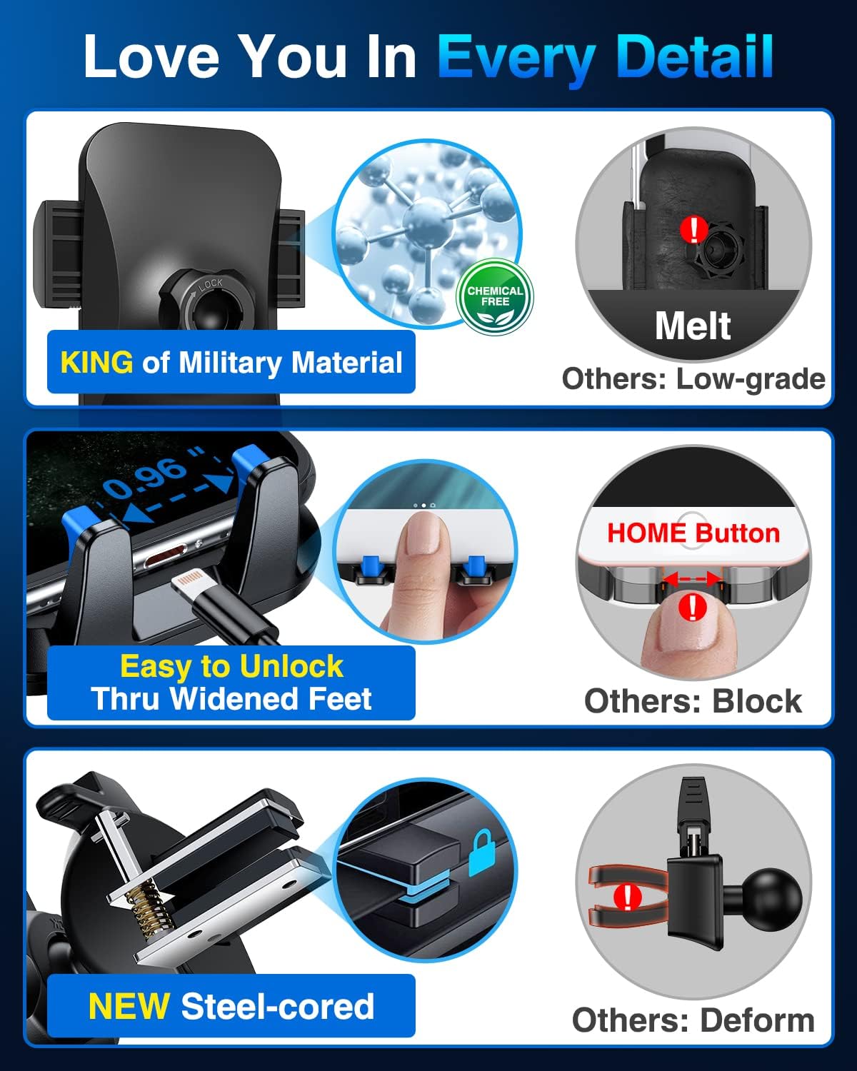 | Special Features | 85+ lbs Suction, Military-Grade Safety, Soft Silicone Protection, Extendable Arm, Steel-Cored Vent Clip |