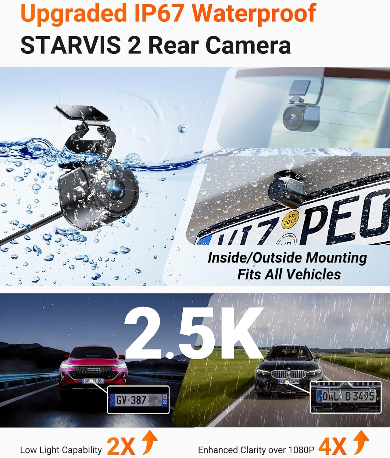 - Upgraded 2.5K rear camera with IP67 waterproof rating and ultra-wide coverage