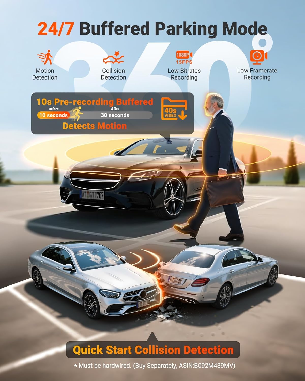 Adjustable 160° lenses for full 360° coverage inside and outside the vehicle