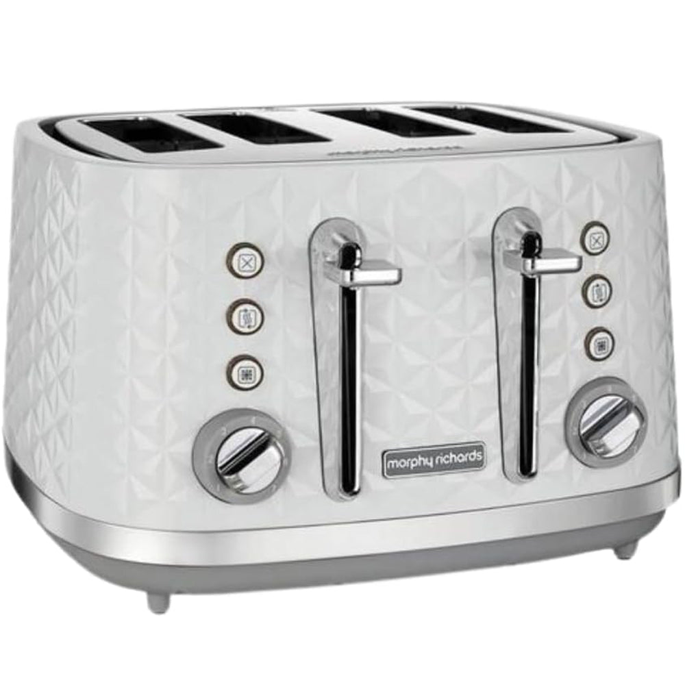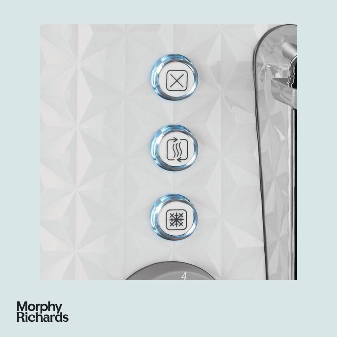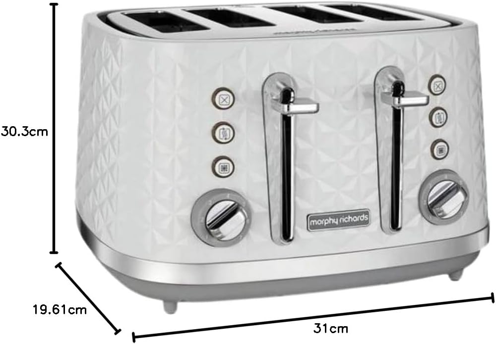 Our Vector 4 Slice Toaster in High Gloss White combines bold geometric design with everyday practicality for a stunning addition to any kitchen. Its variable browning control ensures perfectly toasted results every time, while the defrost and reheat settings make it easy to enjoy bread straight from the freezer or warm up slices without over-toasting. The extra-wide slots accommodate a variety of breads, from crumpets to artisan loaves, and the removable crumb tray keeps cleanup quick and simple. Designed to impress, this modern toaster blends sleek aesthetics with reliable performance for a stylish and efficient breakfast routine.
