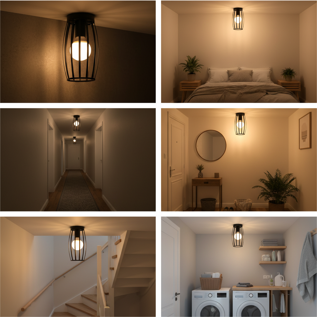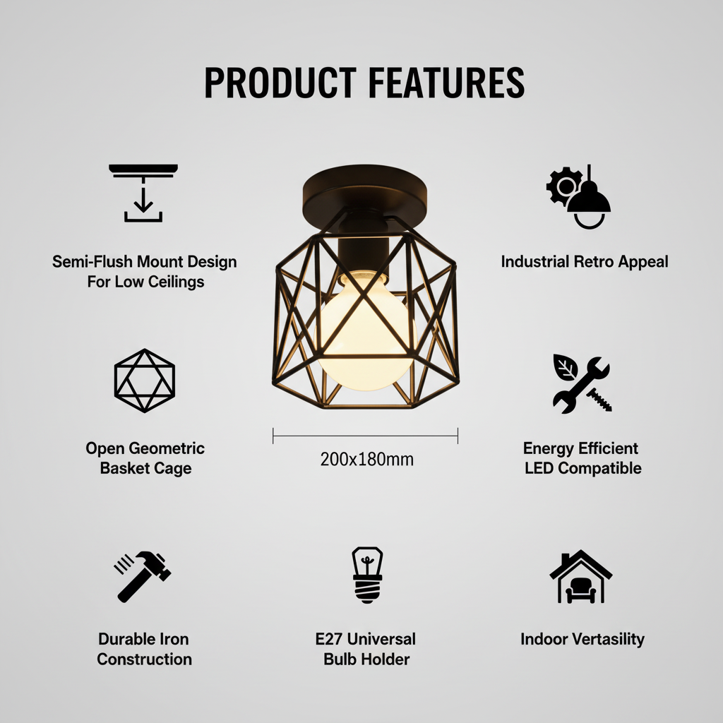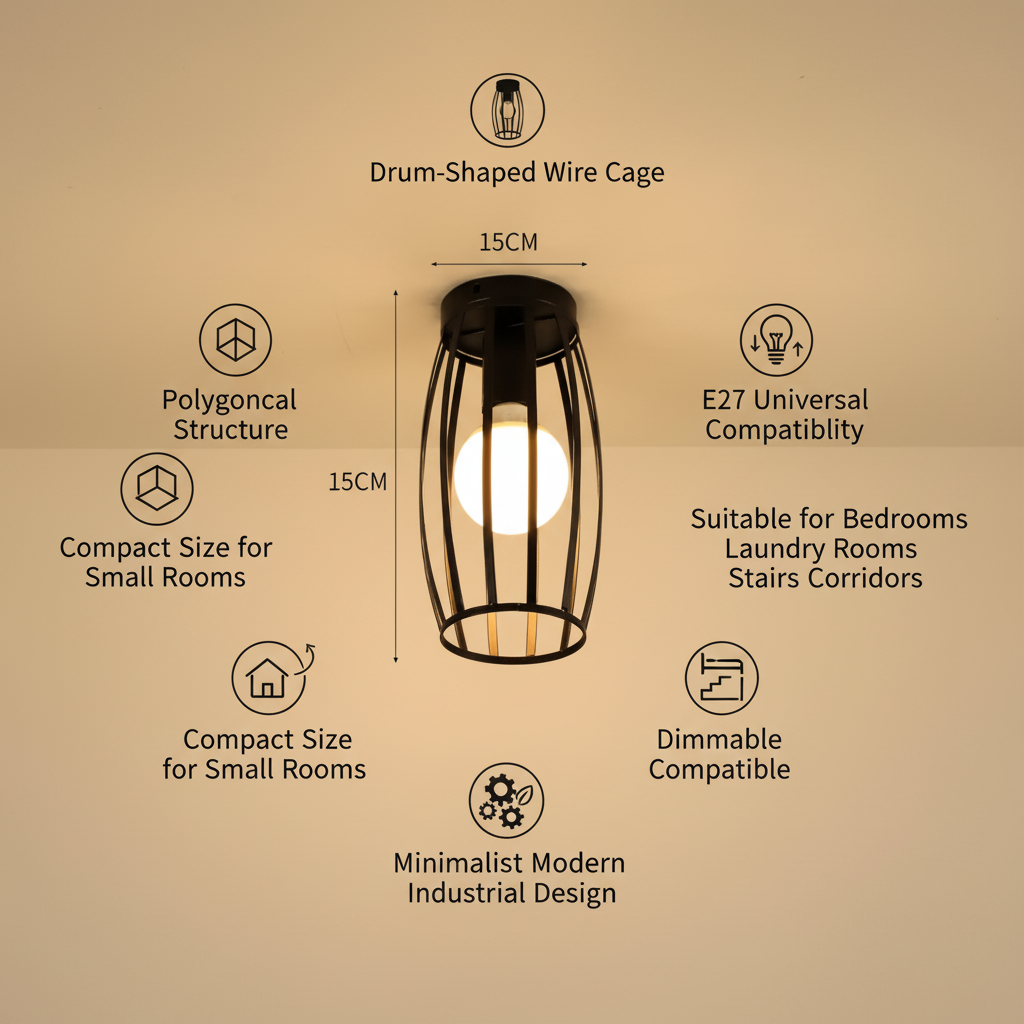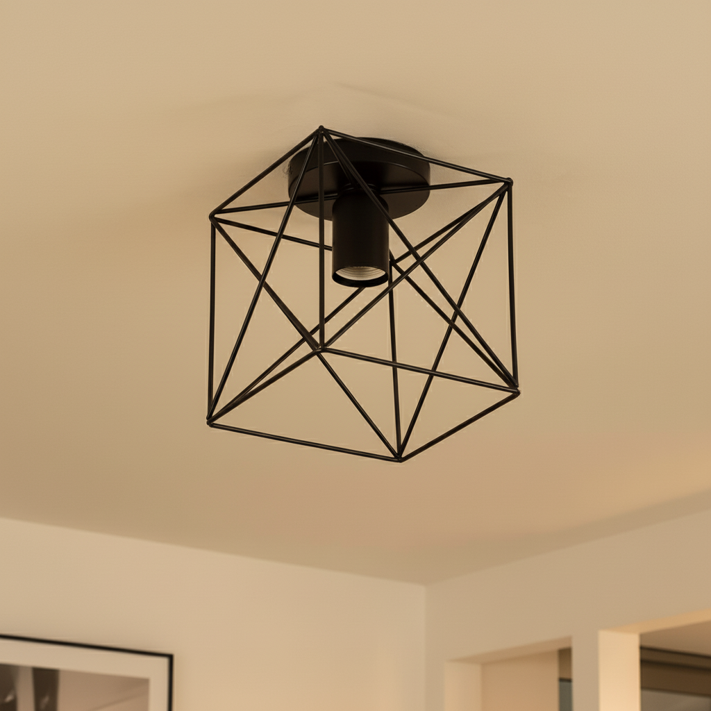 Crafted from durable black iron metal, each ceiling light features a cage or geometric basket-style lampshade that enhances light diffusion while creating a strong decorative statement. Whether you are lighting a hallway, bedroom, kitchen island, cloakroom, corridor, or living area, this versatile range ensures the right balance between style and functionality.