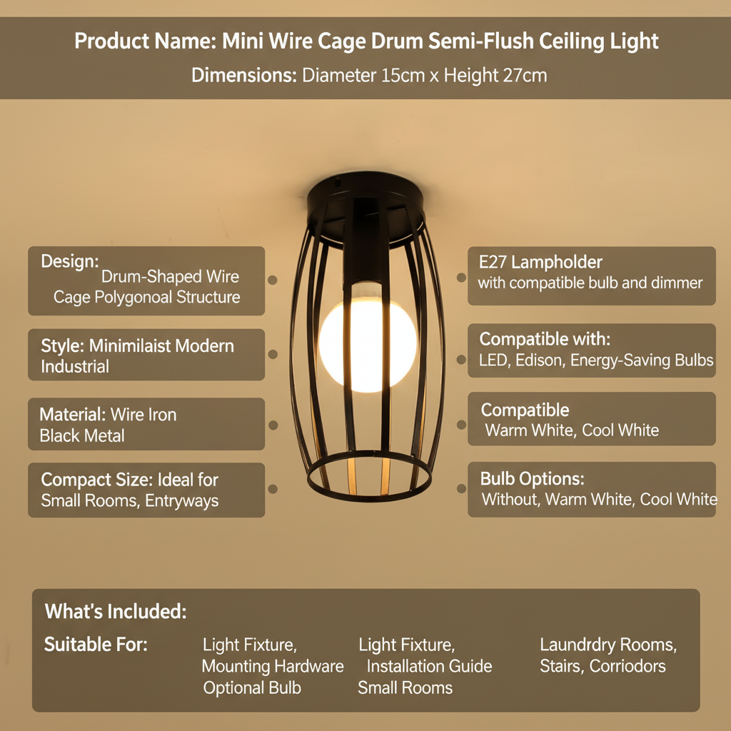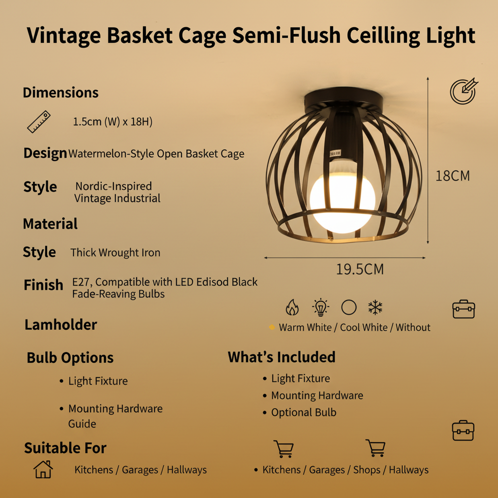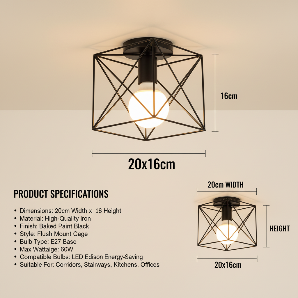 Bring timeless industrial charm into your interiors with this Vintage Black Iron Cage Ceiling Light Collection, designed to suit a wide range of home styles from retro and farmhouse to modern industrial décor. This collection offers multiple size and shape options in a single listing, allowing customers to choose the perfect ceiling light design for their space without confusion.