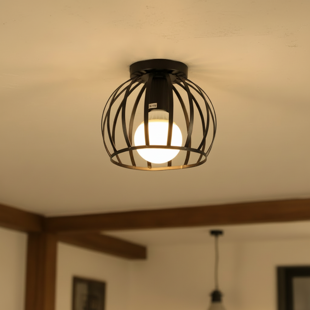 Fitted this vintage semi-flush light in the hallway and the open metal frame adds such a warm, rustic feel. I paired it with an LED E27 bulb and the glow looks spot on. Installation was straightforward and it sits nicely on our lower ceiling.