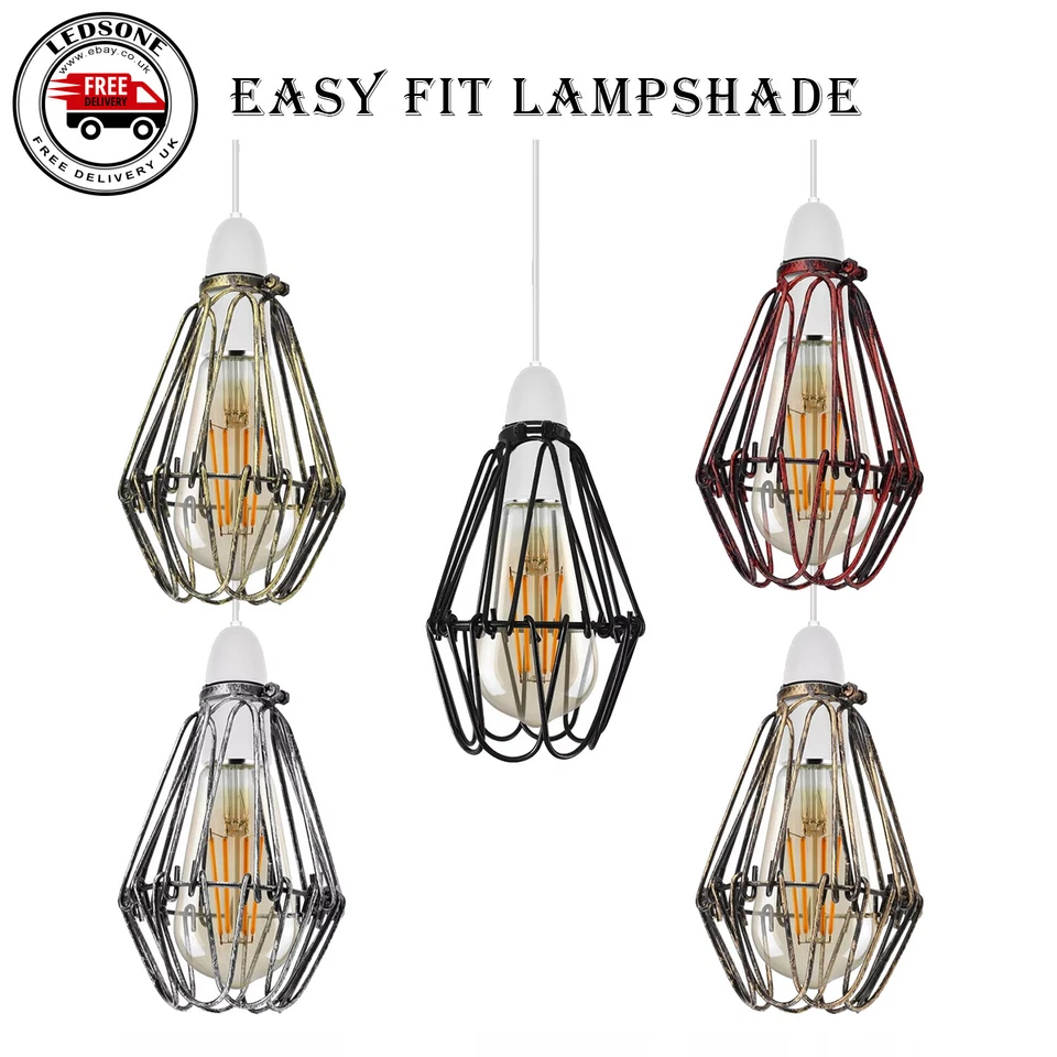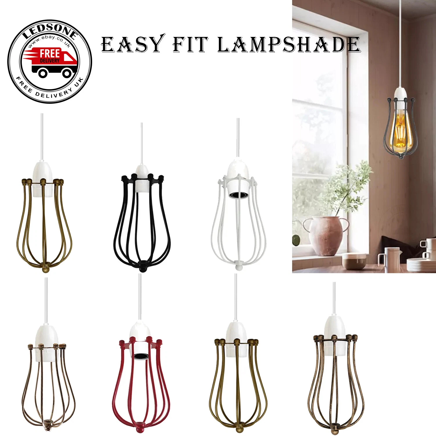 Vintage Ceiling Lightshade Metal Wire Cage Easy Fit Lampshade Hanging Lamp Shade