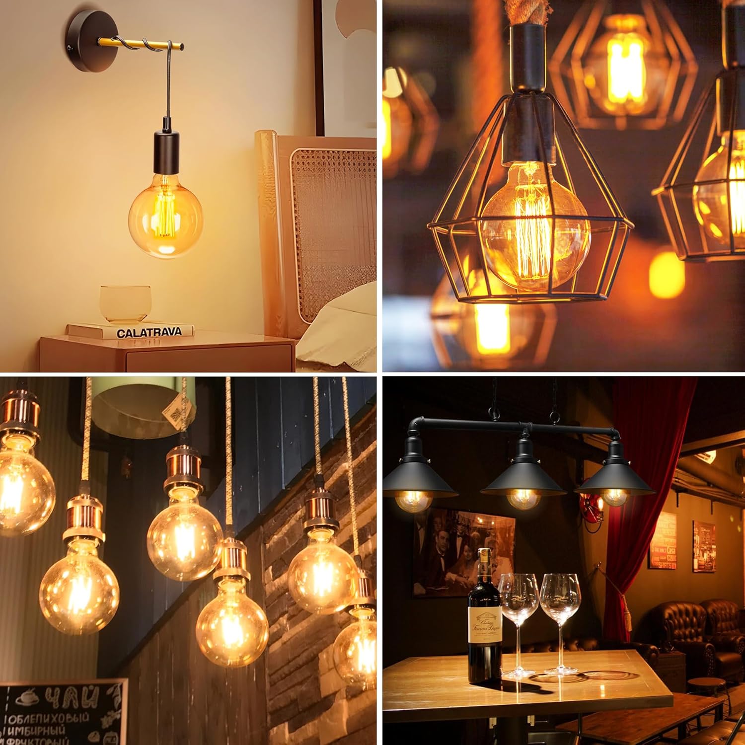 - 4 x G80 E27 incandescent Edison light bulbs
