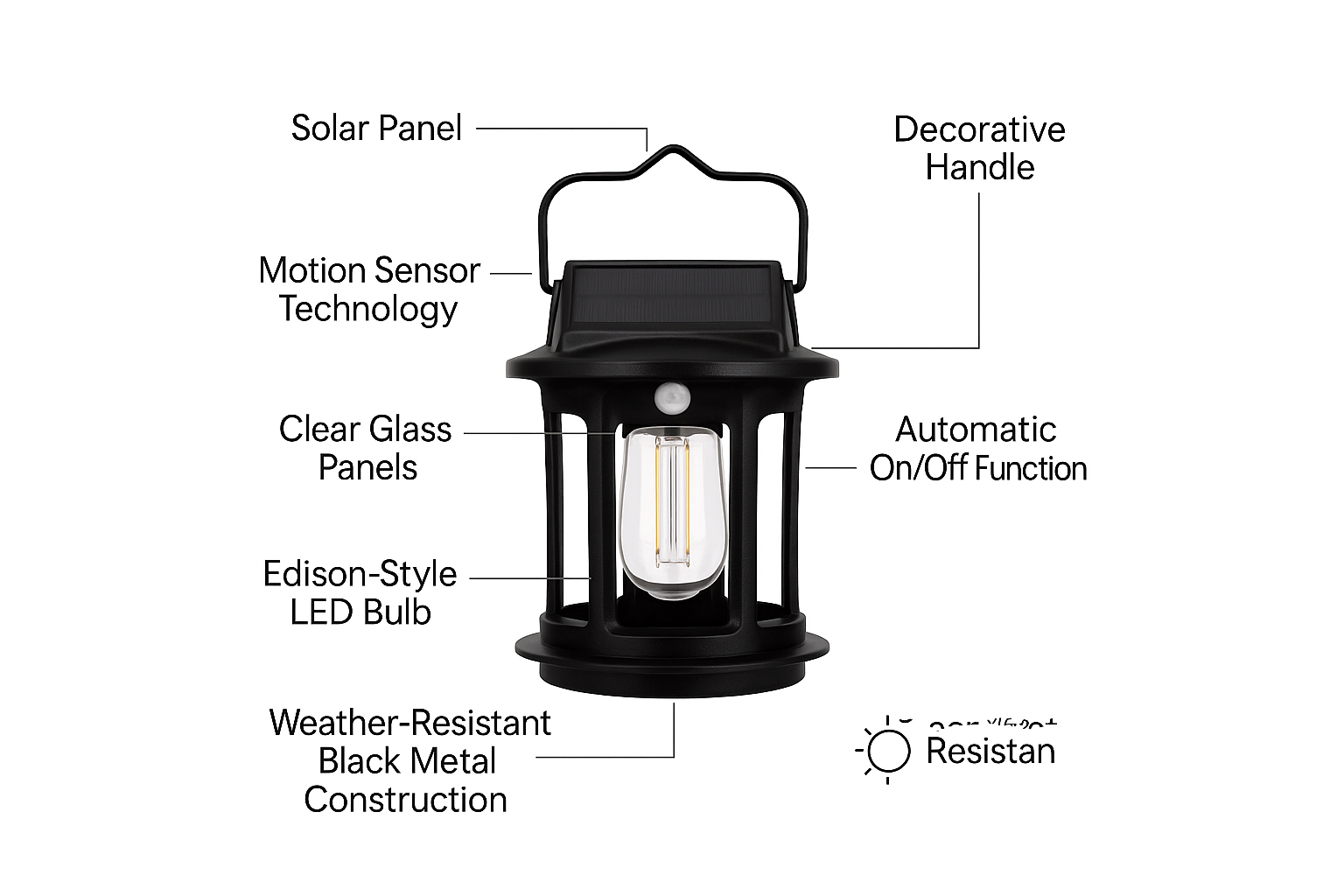 Built to withstand the elements, this lantern light is rated IP44 for water resistance, ensuring reliable performance through rain, wind, or shine.
