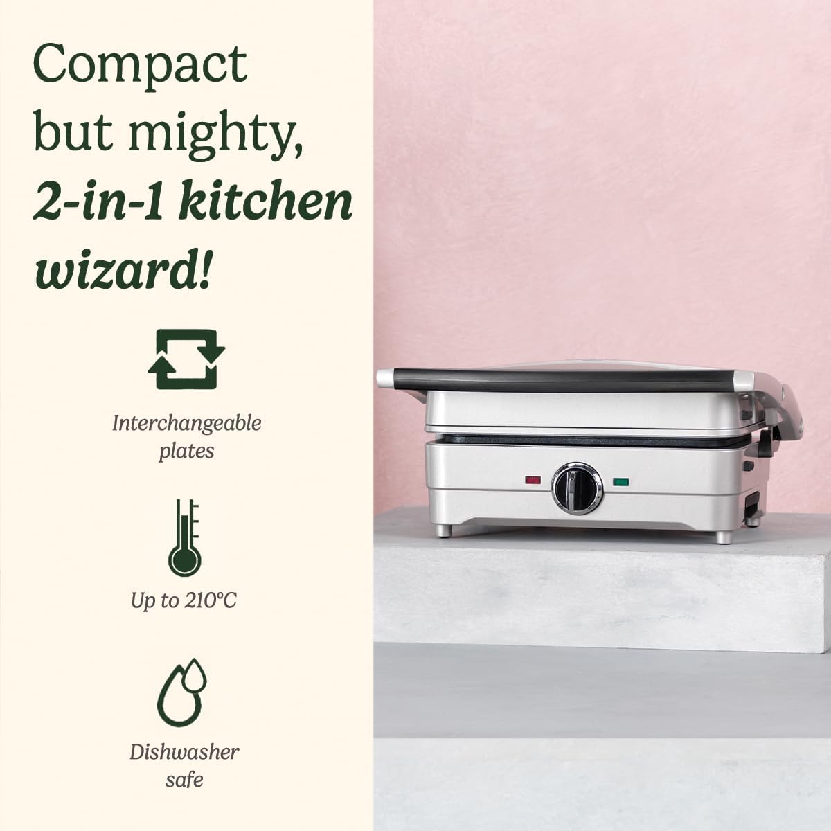 210°C even heating for consistent waffle and pancake results