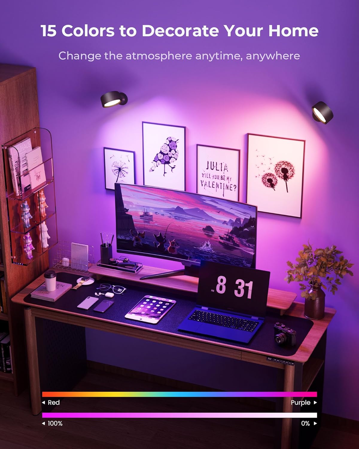 Our RGB rechargeable LED wall light is designed to deliver versatile indoor lighting with modern convenience and style. Featuring 18 adjustable RGB colours and three white colour temperatures, this wireless wall sconce allows you to create the perfect ambience for bedrooms and living spaces. Powered by a high-capacity 8000mAh rechargeable battery, it provides extended usage while eliminating the need for wiring. Touch and remote control operation, dimmable brightness, timer settings, and a precision 360° rotatable design ensure flexible lighting control, easy installation, and effortless daily use.