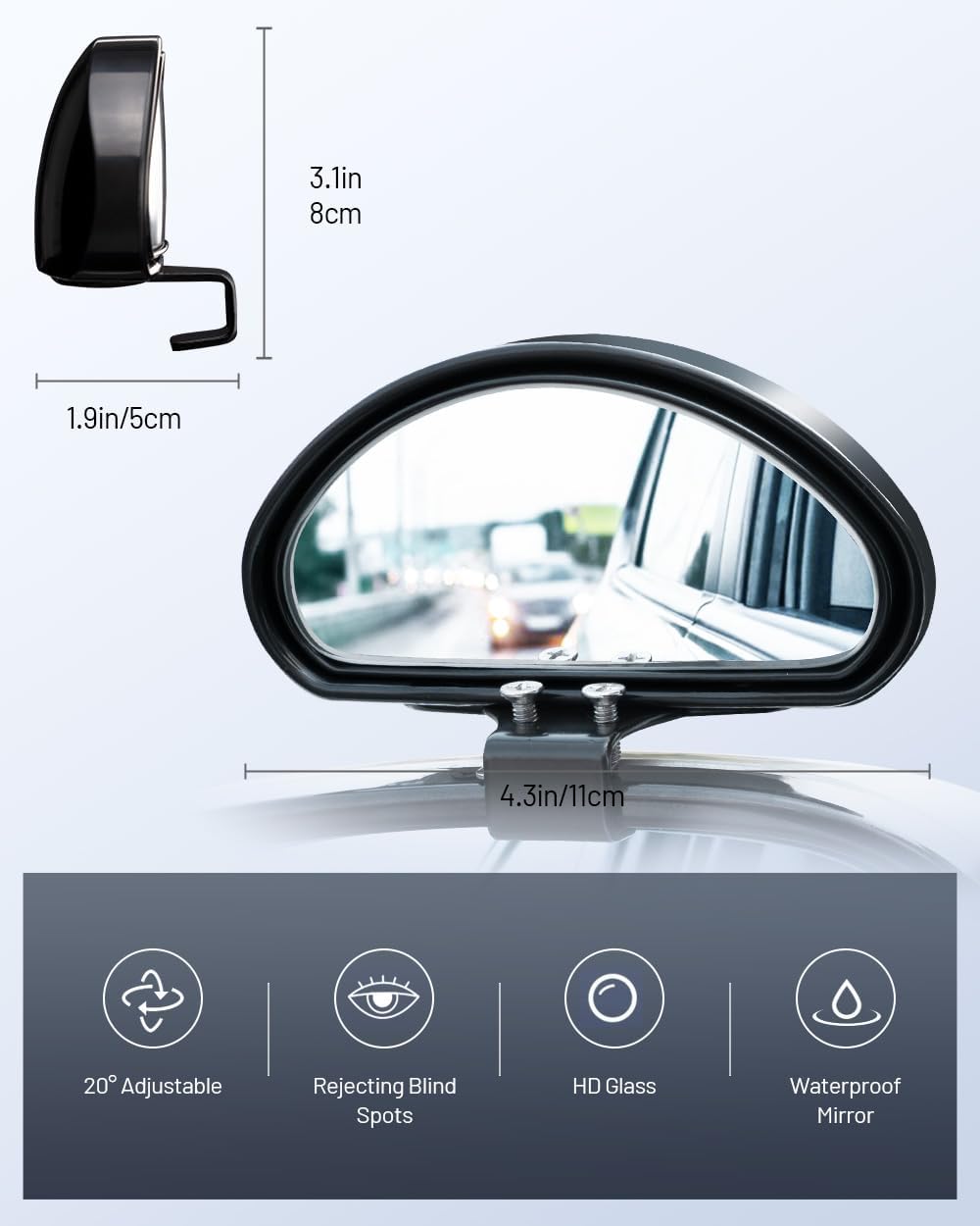 Our WildAuto 2PCS Adjustable Blind Spot Mirrors are designed to enhance driving safety by providing a wider, clearer view of your surroundings. Crafted from high-quality, waterproof, and dustproof materials, these mirrors are built for long-lasting durability and resistance to wear, rust, and corrosion. The adjustable convex design eliminates blind spots and allows full directional adjustment for optimal visibility. Suitable for all cars, SUVs, trucks, and buses, these mirrors are easy to install using the included screws, ensuring stable placement and improved driving confidence.
