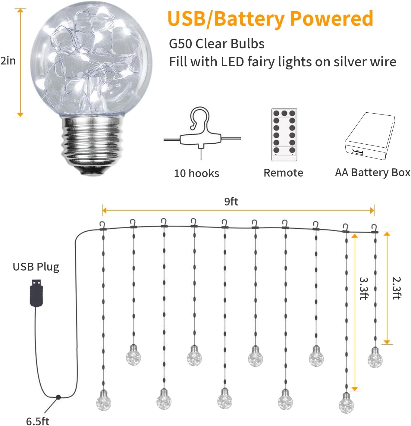 Transform your space into a dreamy wonderland with the YOLIGHT Wishing Ball Curtain Lights. Featuring 200 warm white LEDs encased in elegant Edison-style bulbs filled with delicate copper wire, these twinkle globe fairy lights are perfect for creating a soft, romantic ambiance. Designed for both convenience and beauty, they come with dual power options—USB plug for continuous use or battery operation for portability. The included remote control lets you easily switch between 8 lighting modes, set timers, and adjust brightness. Ideal for weddings, bedrooms, parties, and festive celebrations, these energy-efficient and water-resistant curtain lights bring timeless charm to any indoor or outdoor décor.