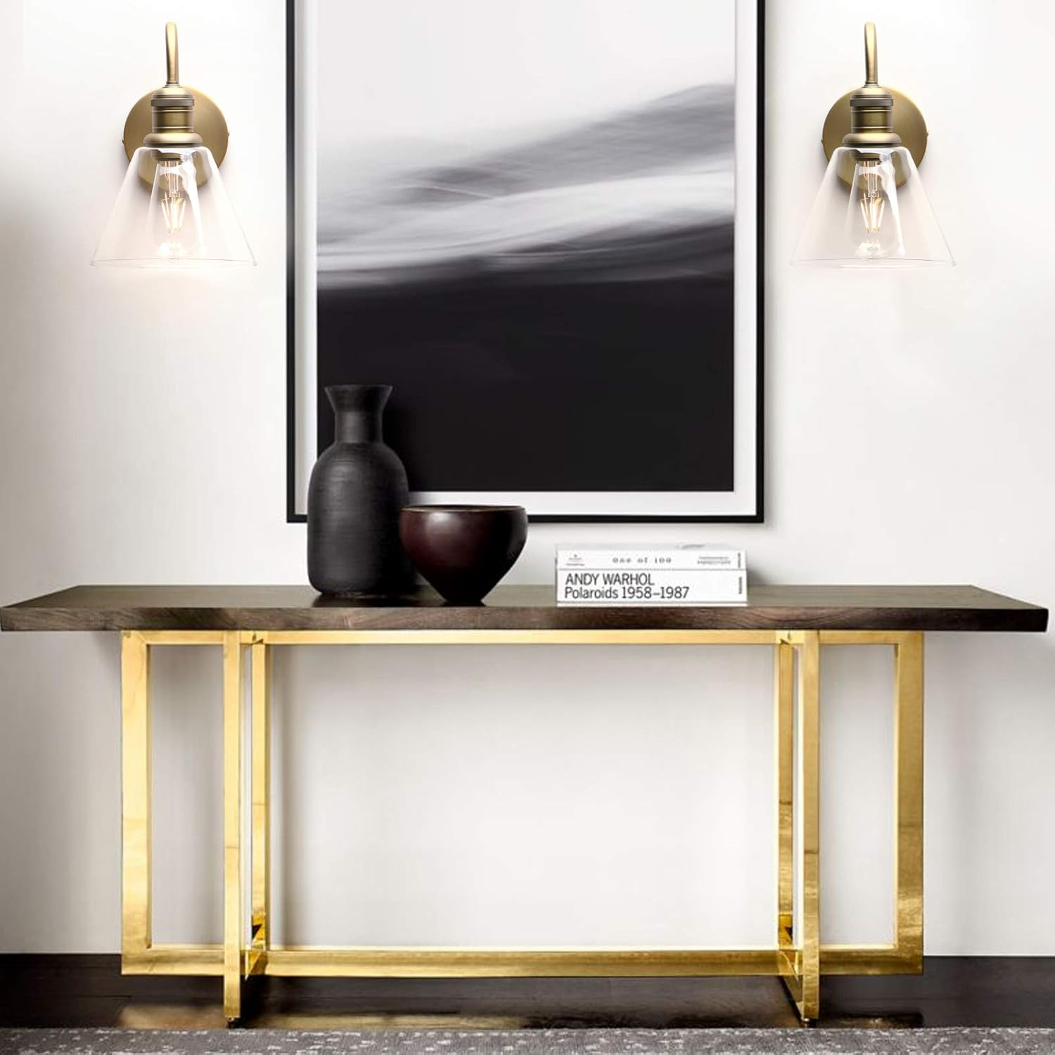 Our Yosoan Industrial Glass Wall Sconce offers a stylish vintage look for any room, combining performance and aesthetic appeal. Finished in an antique brushed design with a clear cone glass lampshade, this wall light complements a variety of interior styles including living rooms, bedrooms, kitchens, and loft spaces. The shatterproof glass and durable aluminium construction ensure long-lasting use, while its up/down light orientation provides flexible illumination. Designed for E27 screw bulbs, it supports LED or incandescent lighting (bulbs not included) and is compatible with standard or dimmer switches to suit your lighting needs.