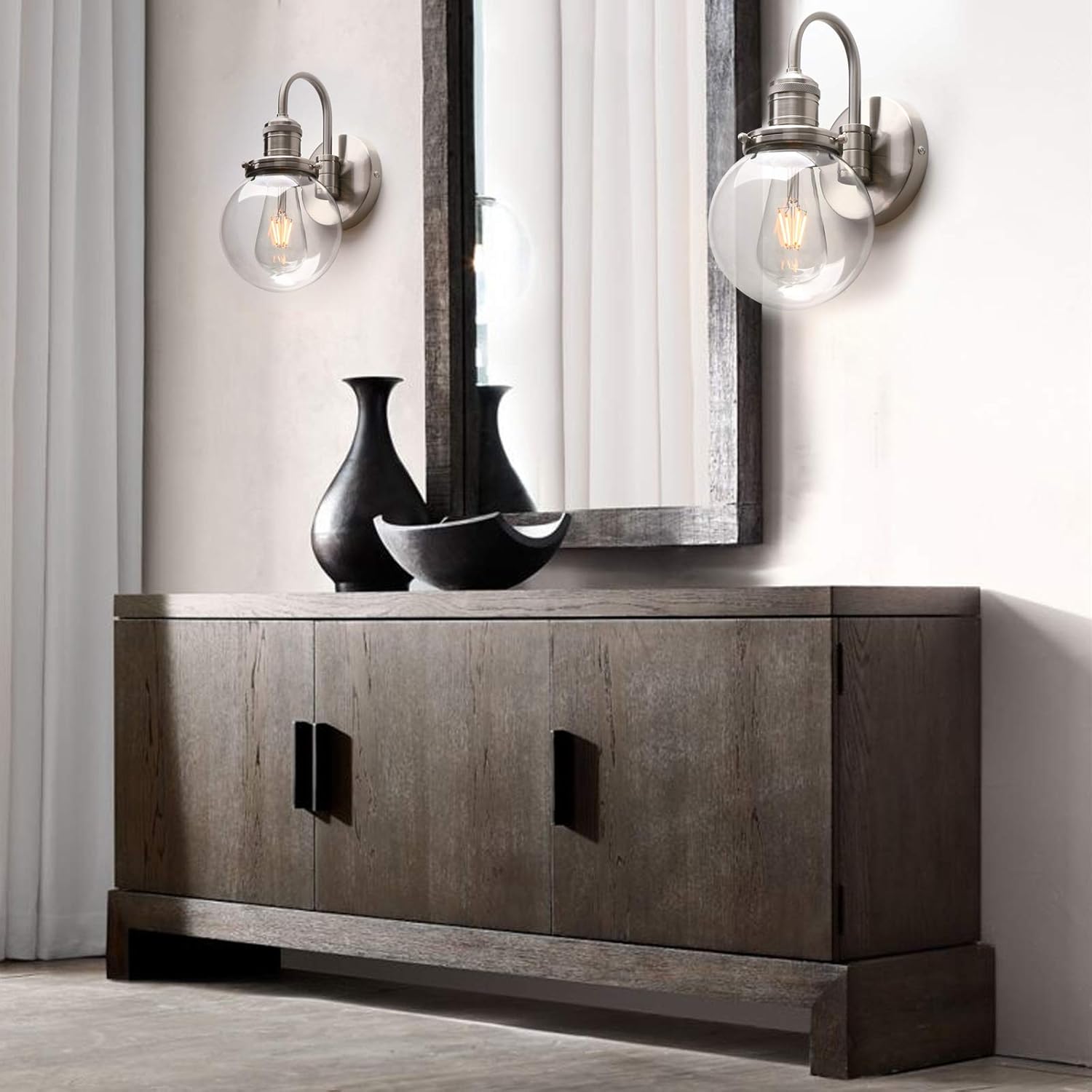 Our Yosoan Industrial Globe Wall Sconce combines vintage design with modern functionality, featuring a brushed metal finish and a clear glass lampshade. Designed to complement a wide variety of interiors, this wall light is ideal for living rooms, bedrooms, kitchens, offices, lofts, or bars. The shatterproof glass shade and durable aluminium construction ensure long-lasting performance, while the dampproof design in the light holder allows versatile installation facing up or down. Hardwired for E27 screw bulbs, this sconce supports both LED and incandescent bulbs (not included) and is compatible with standard wall switches or dimmer switches for adjustable lighting control.