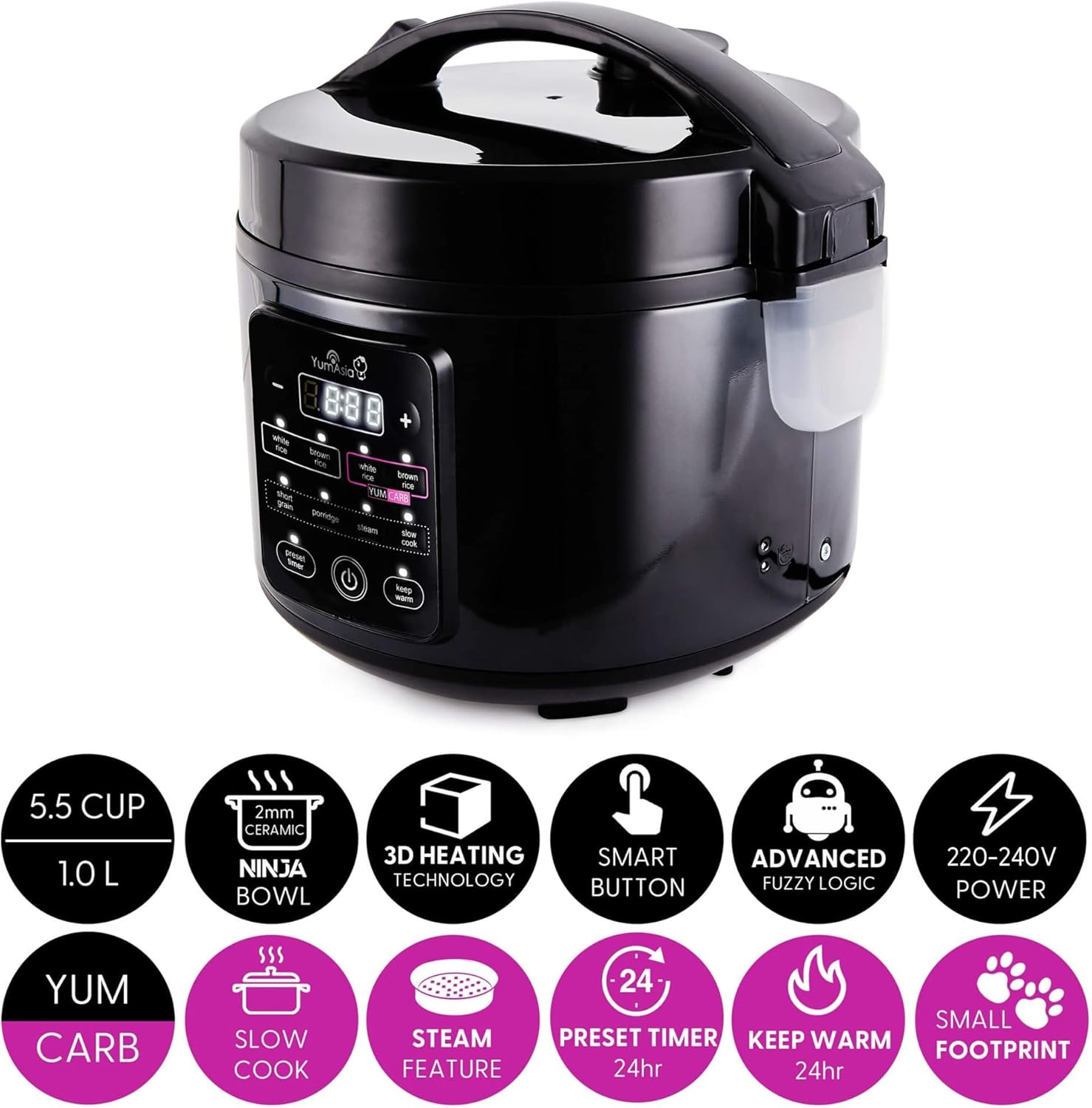 • Versatile capacity – 5.5 cup (1 litre) uncooked rice capacity, ideal for 1–5 people. Suitable for 220–240V power with a UK 3-pin plug.