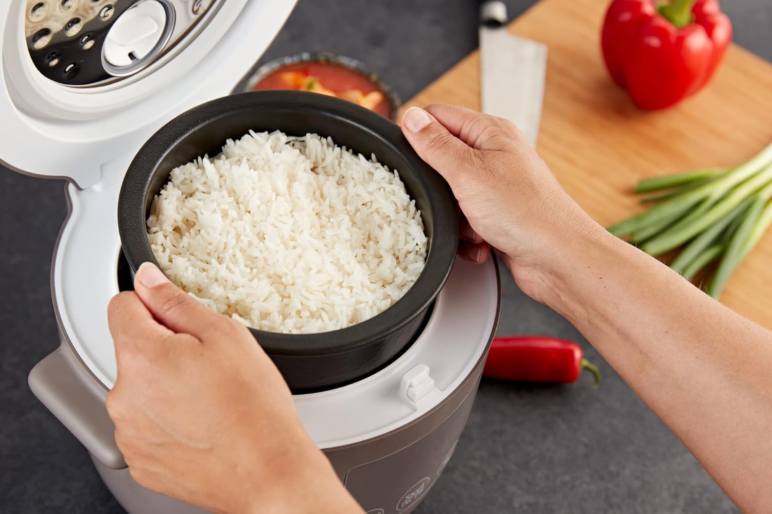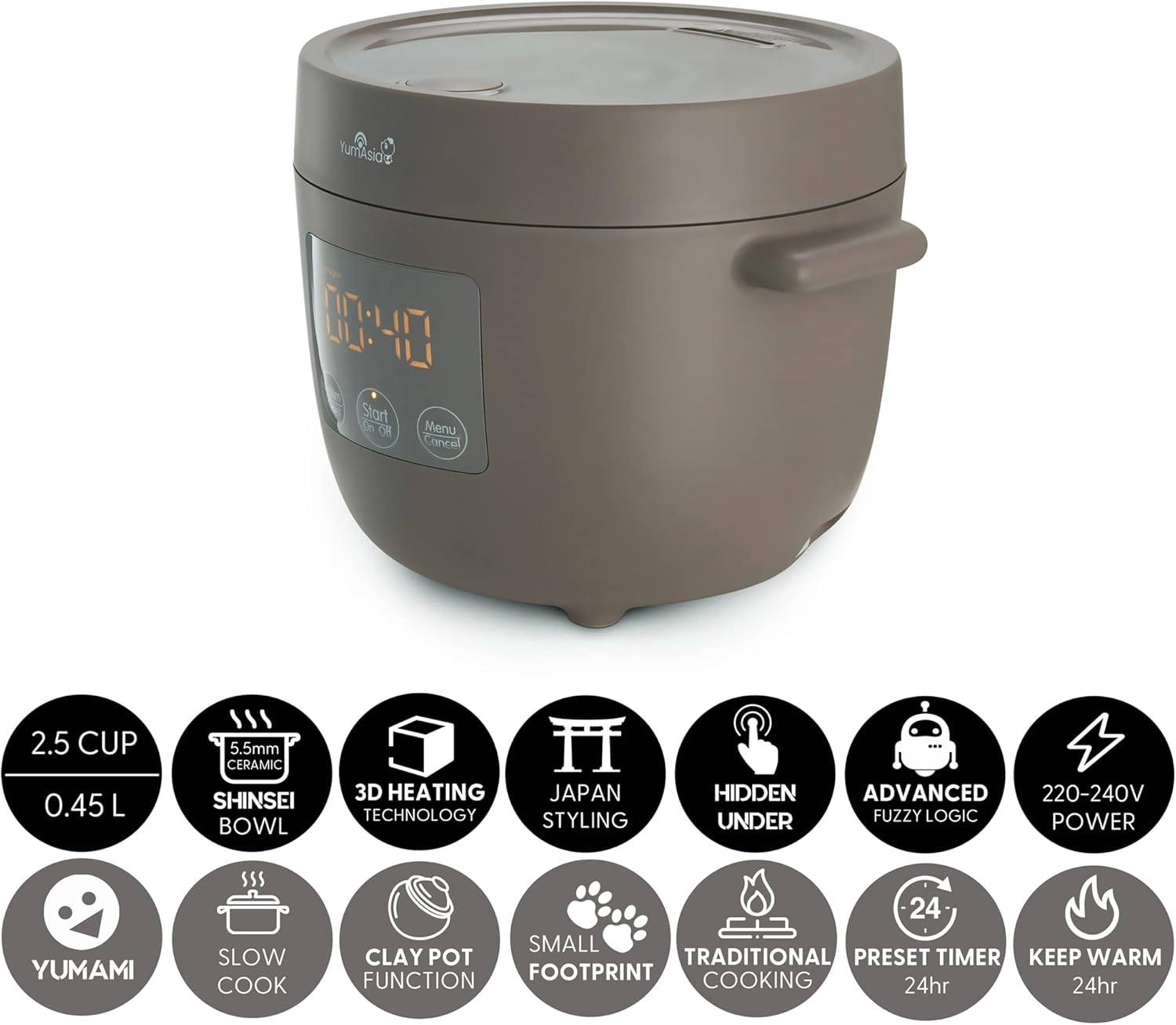 Our Yum Asia Tsuki Mini Rice Cooker in elegant Pebble Grey delivers perfectly cooked rice at the touch of a button. Designed for small kitchens, individuals, and couples, this compact rice cooker combines advanced fuzzy logic technology with a beautifully handcrafted 5.5 mm ceramic Shinsei inner bowl for healthy and durable cooking. With 5 rice cooking functions and 2 multicooker functions, it ensures every grain is cooked to perfection—preserving taste, texture, and aroma.